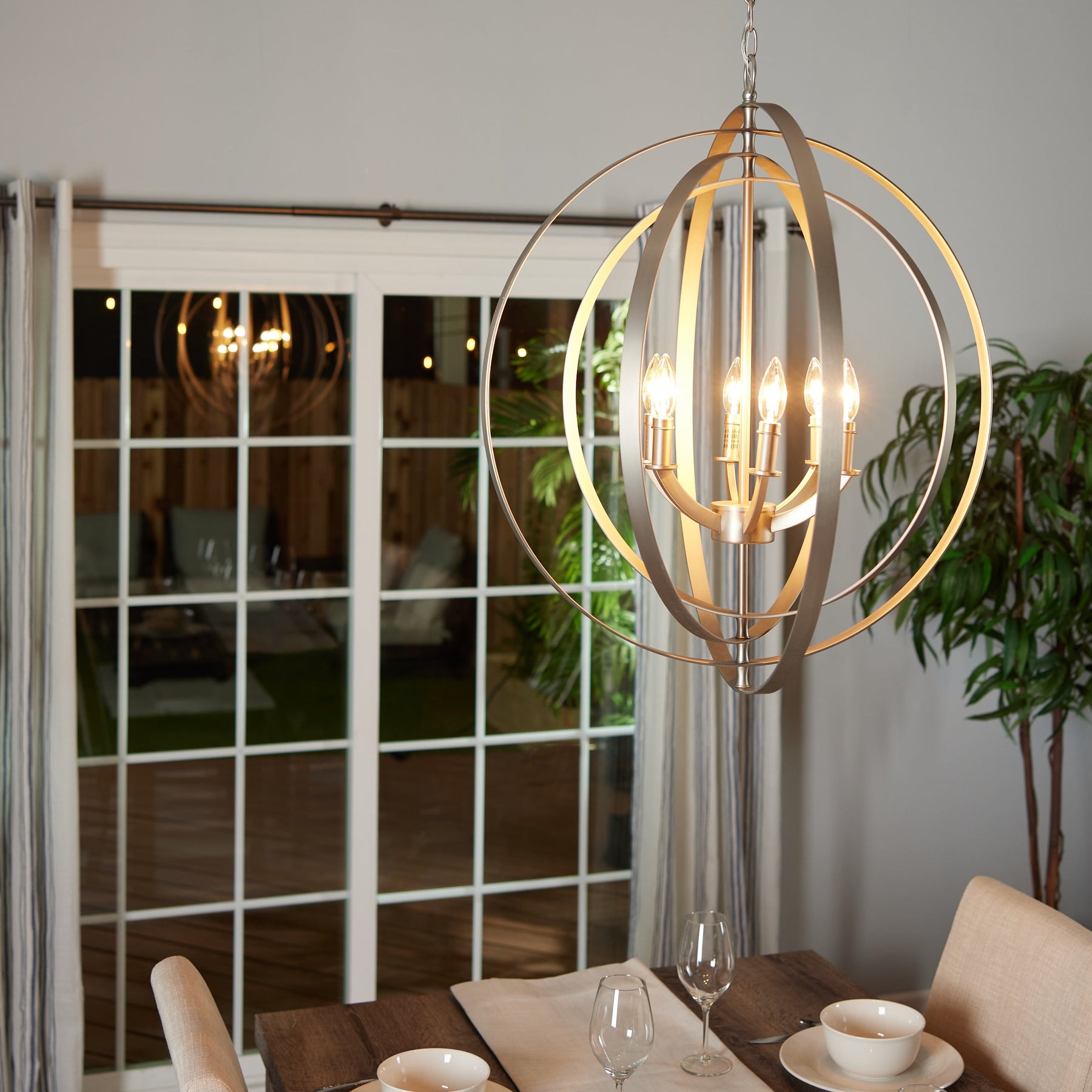 Illuminate your home with the sophisticated design of Progress Lighting's Equinox 6-Light Gray Transitional Chandelier. This elegant fixture features stunning burnished silver concentric rings that bring an ethereal, celestial aesthetic to any room. Ideal for transitional or contemporary settings, it ensures exceptional quality and reliability.