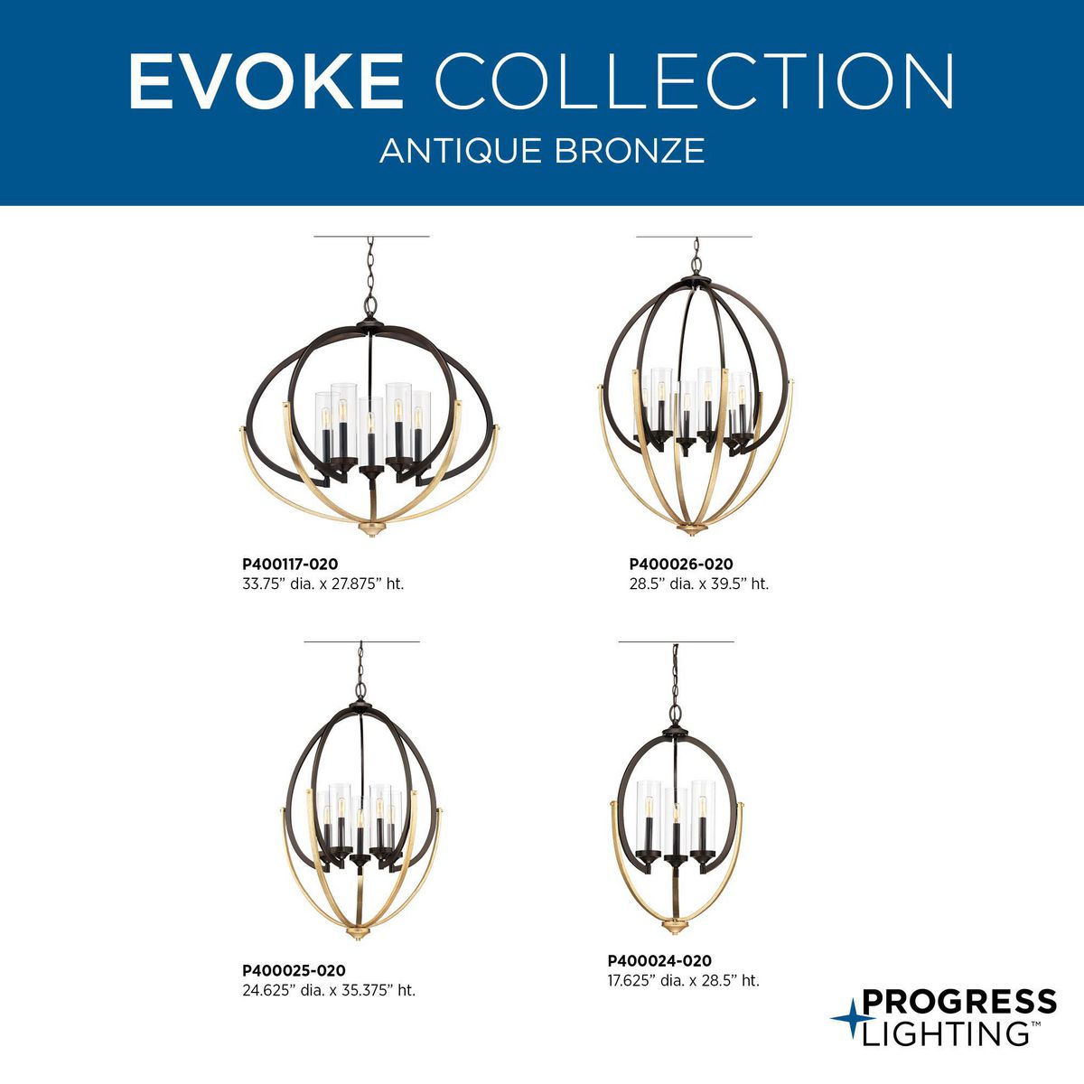 Illuminate your home with the stunning Evoke 5-Light Antique Bronze Chandelier by Progress Lighting. This exquisite fixture combines an antique bronze finish with clear glass cylinders, creating a captivating blend of transitional and luxe styles. Perfect for dining rooms, foyers, or great rooms, it offers versatility with adjustable height options and complements any sophisticated interior.