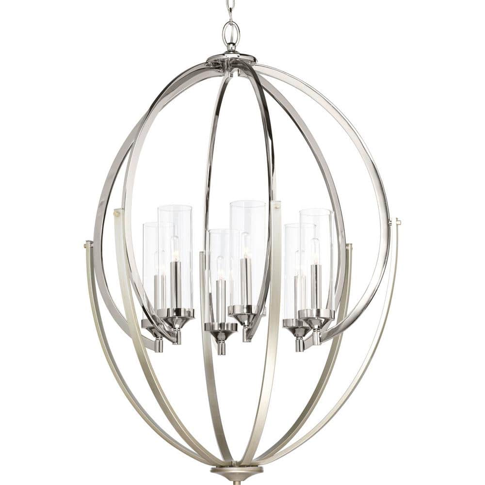Progress Lighting Evoke Collection 6-Light Polished Nickel Clear Glass Luxe Chandelier Light