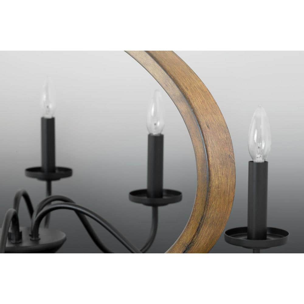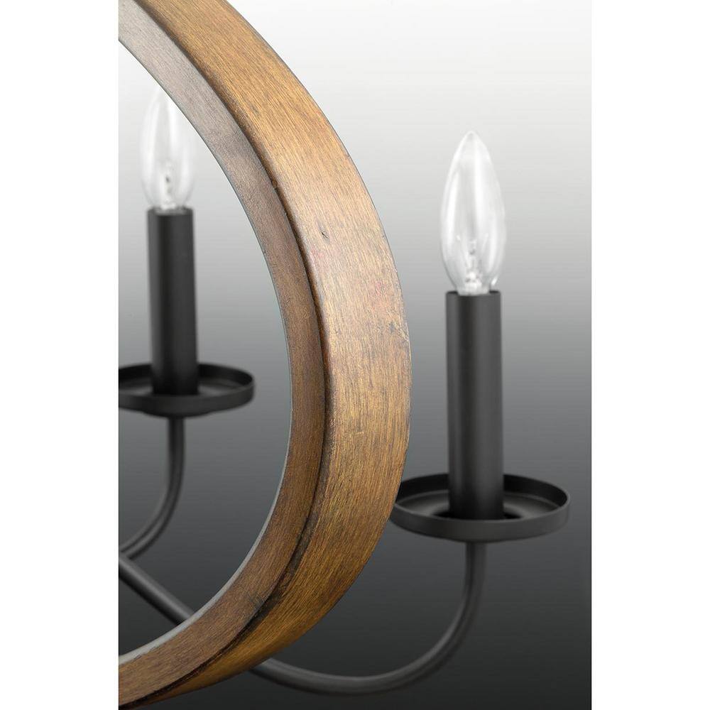 The Fontayne Collection 6-Light Chandelier by Progress Lighting combines early American charm with a modern twist, perfect for rustic and urban farmhouse settings. Its antique bronze finish paired with faux oak accents creates an inviting atmosphere, while the graceful candelabra lights enhance any space with a warm, elegant glow.
