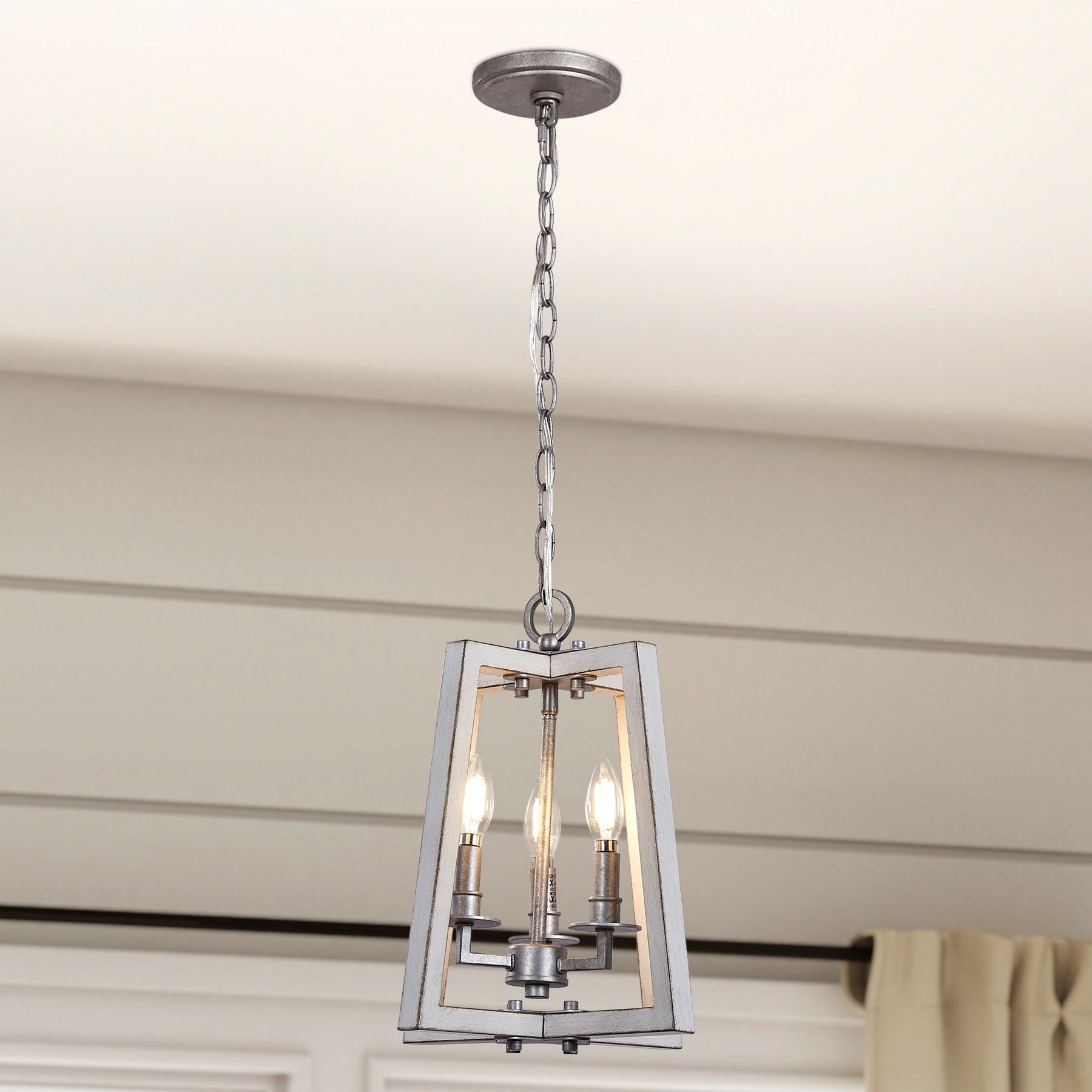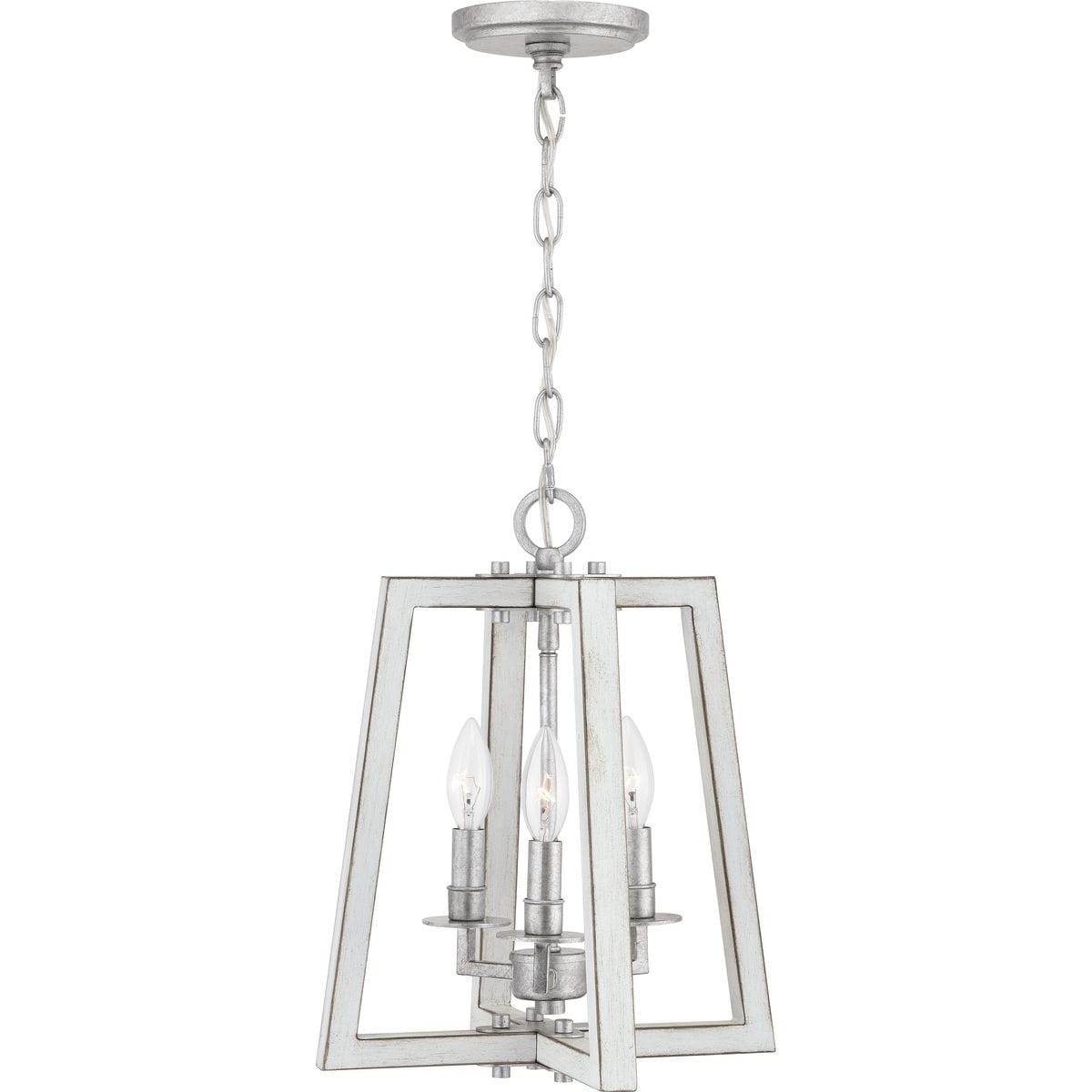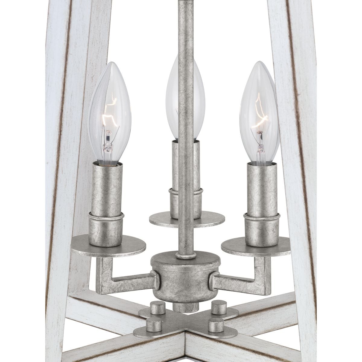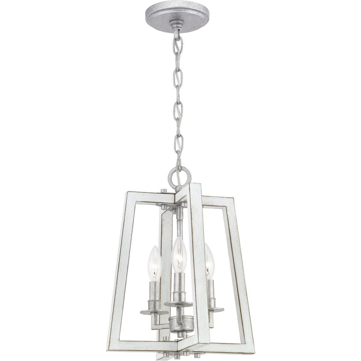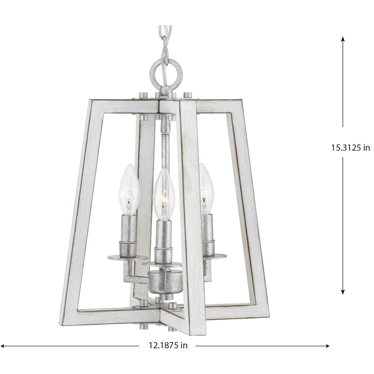 Illuminate your spaces with the Forrester 3-Light Farmhouse Pendant Light by Progress Lighting. This open lantern-style fixture is finished in an antique white and galvanized pattern, casting a warm, inviting glow through its candelabra bulbs. Perfect over kitchen islands or living rooms, its sturdy steel construction and elegant design add a touch of rustic charm to any setting.