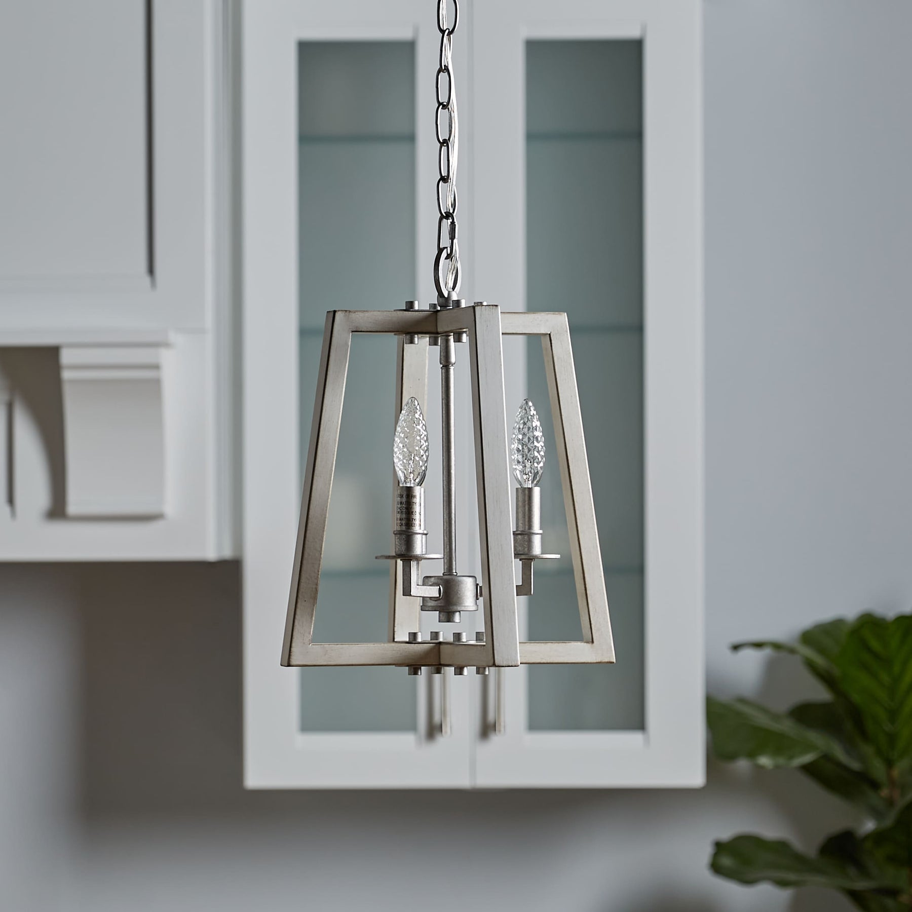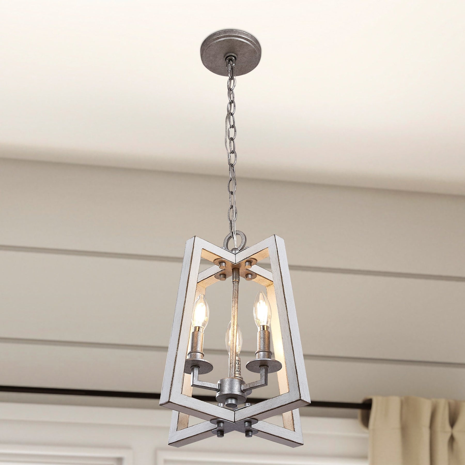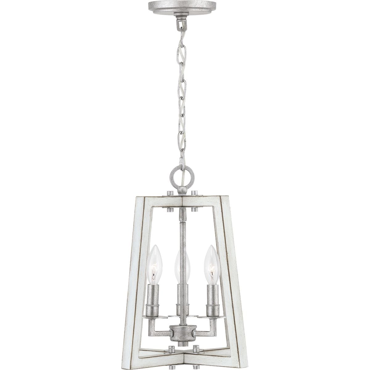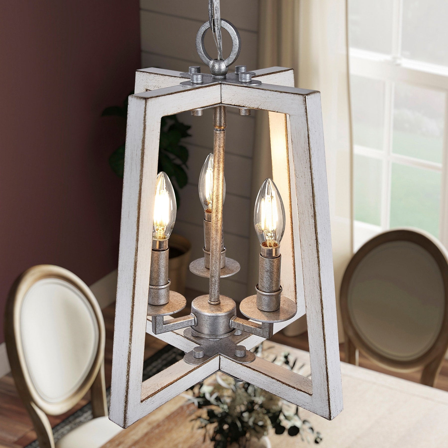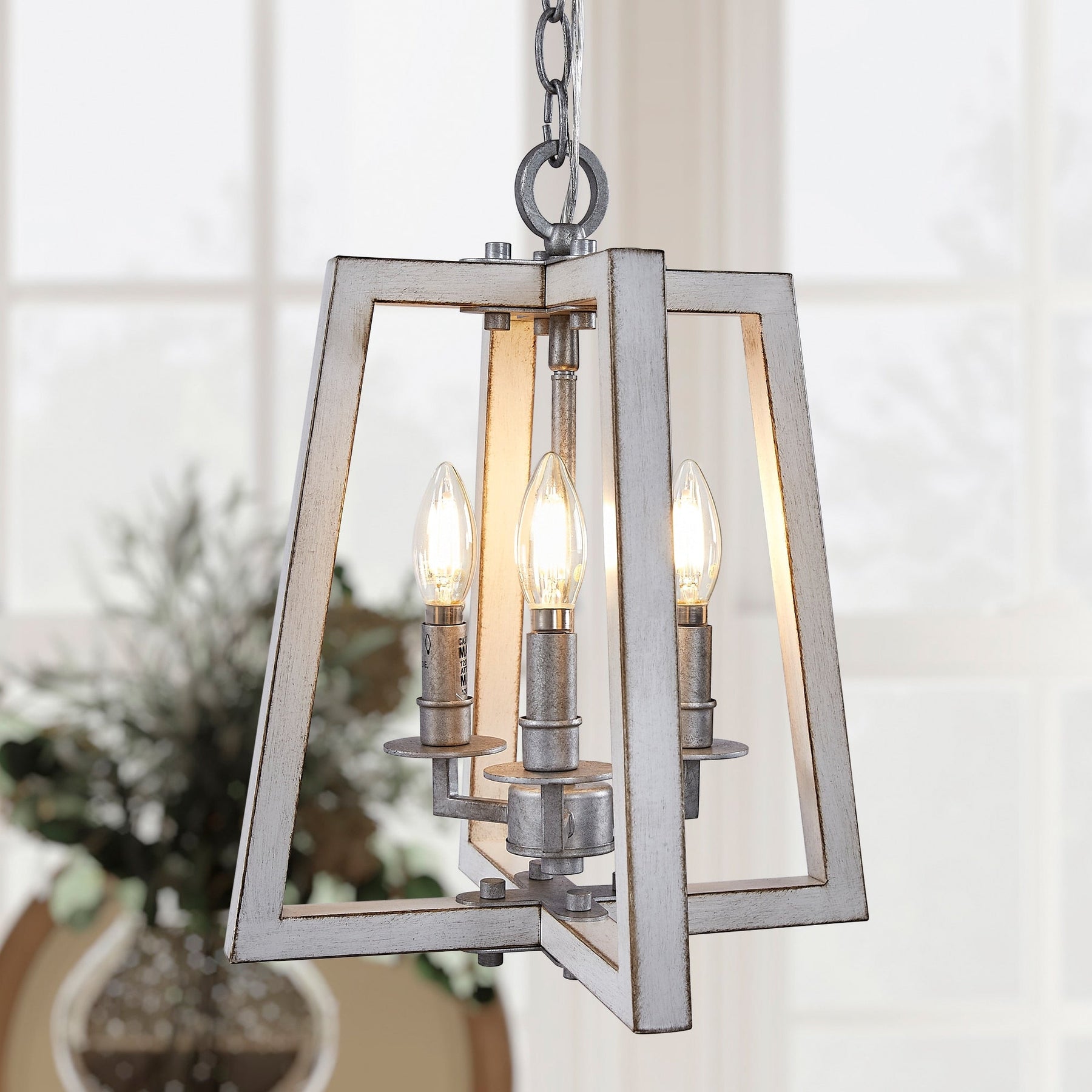 Illuminate your spaces with the Forrester 3-Light Farmhouse Pendant Light by Progress Lighting. This open lantern-style fixture is finished in an antique white and galvanized pattern, casting a warm, inviting glow through its candelabra bulbs. Perfect over kitchen islands or living rooms, its sturdy steel construction and elegant design add a touch of rustic charm to any setting.