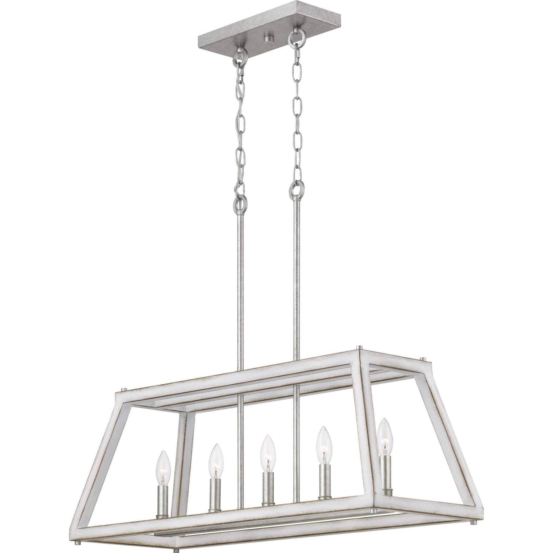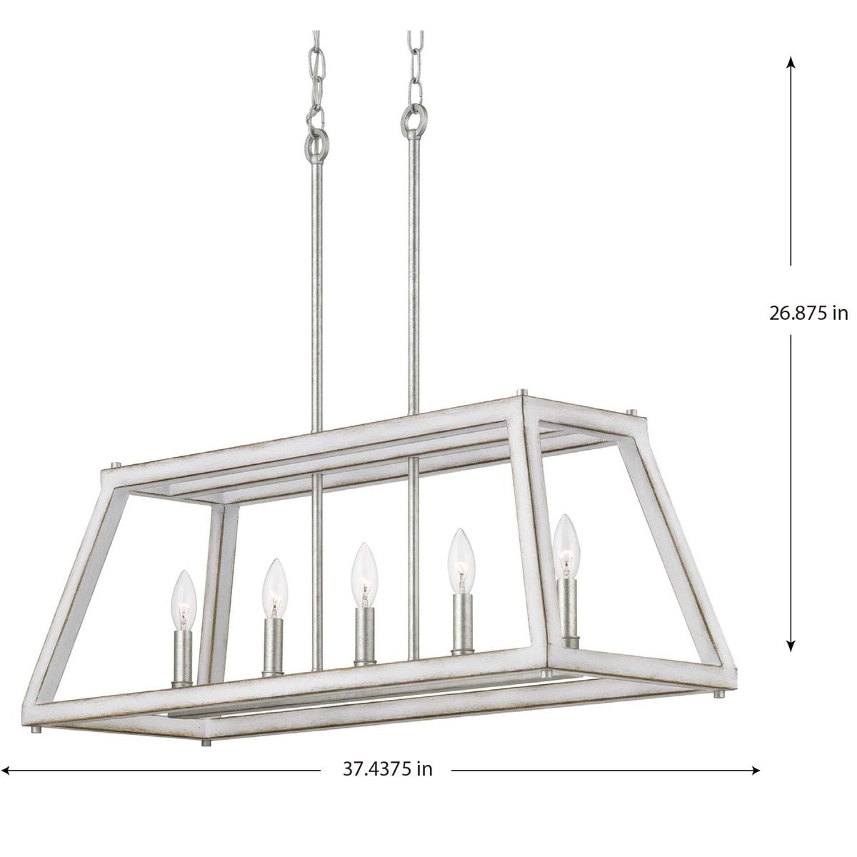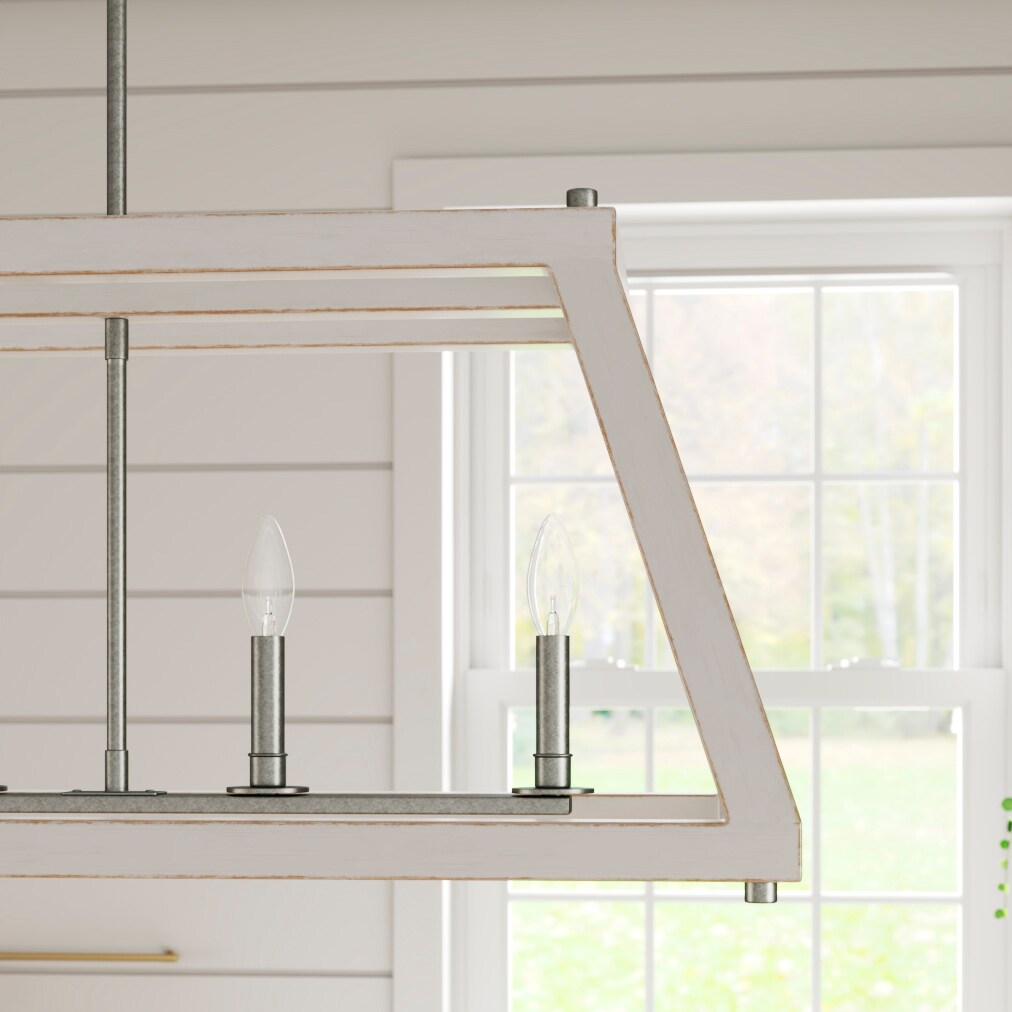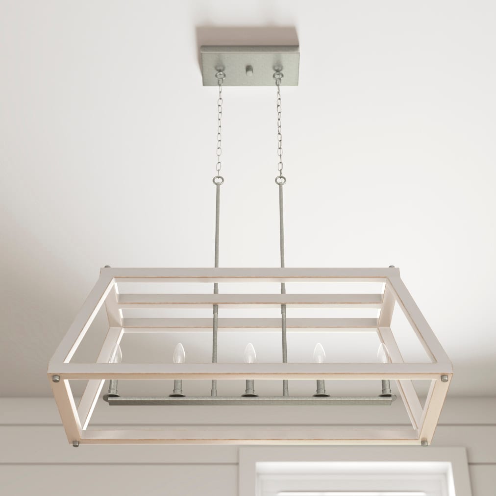 Imagine the transformative power of the Forrester 5-Light Gray Farmhouse Chandelier, with its enchantingly rustic allure enhanced by an antique white and galvanized finish. This centerpiece breathes new life into any room, casting warm, ambient light through its geometric open frame. Infuse your dining space with character by pairing this chandelier with vintage furniture and natural wood elements, creating a harmonious balance of rugged elegance. A testament to timeless design, this chandelier is essential for those seeking to craft a rich and welcoming environment.