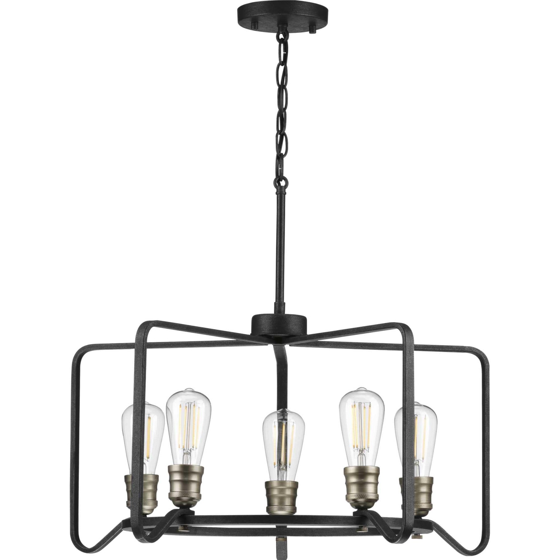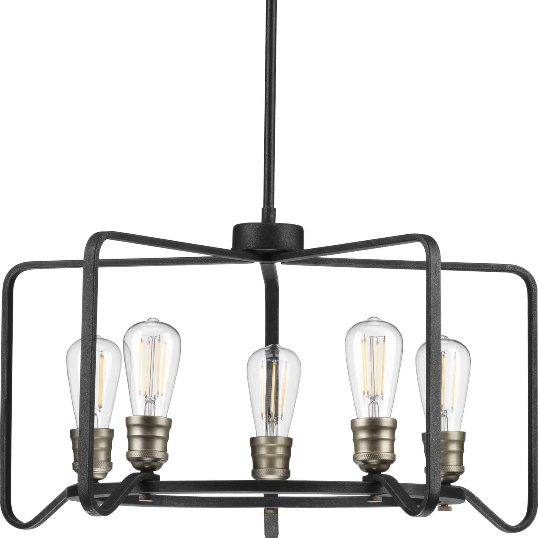Illuminate your space with the rustic charm of the Progress Lighting Foster 5-Light Black Farmhouse Chandelier. Perfect for farmhouse and industrial style settings, this chandelier features a striking gilded iron finish and a customizable hanging height to fit any room perfectly.