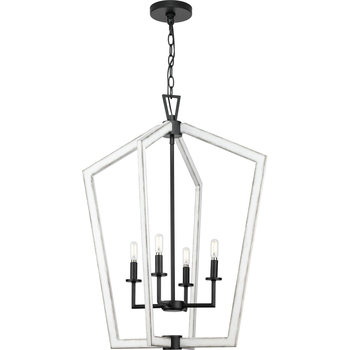 Elevate your space with the Galloway 4-Light Matte Black Farmhouse Chandelier. This striking fixture blends clean, contemporary lines with rustic charm, making it an ideal choice for modern farmhouse, mountain, and coastal interiors. Its adjustable chain and compatibility with dimmable bulbs offer both versatility and ambiance to your home.