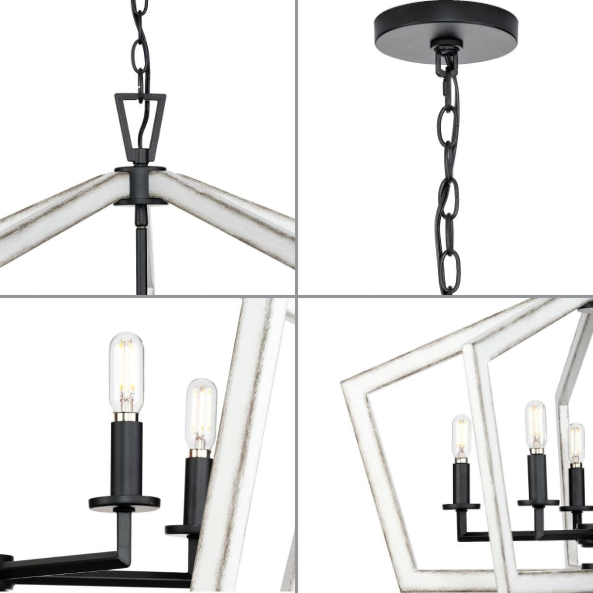 Illuminate your home with the elegant Galloway 5-Light Matte Black Chandelier. This farmhouse chandelier seamlessly blends rustic charm with contemporary flair, featuring an intricate matte black frame with lightly distressed white accents. Perfect for kitchens, dining rooms, or living spaces, it adds a touch of casual elegance with its glowing candelabra lights.