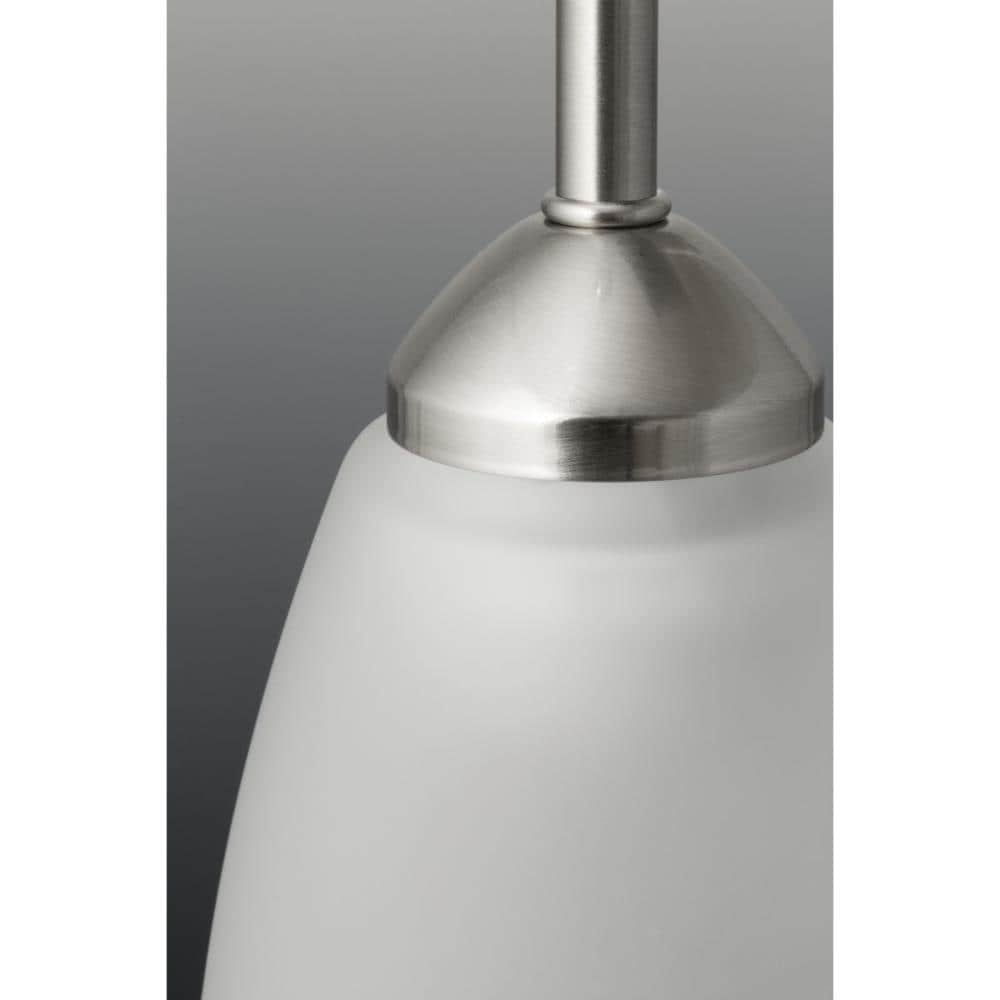 The Progress Lighting Gather Chandelier is a symphony of form and function, gracefully transforming any room it adorns. Its brushed metal arms elegantly cradle etched glass shades, casting a soft and welcoming glow that enhances both traditional and contemporary interiors. Picture it as a centerpiece over a dining area or softly illuminating a luxurious living room. This chandelier is more than a source of light—it's an ambassador of style and substance, redefining spaces with an air of sophistication.