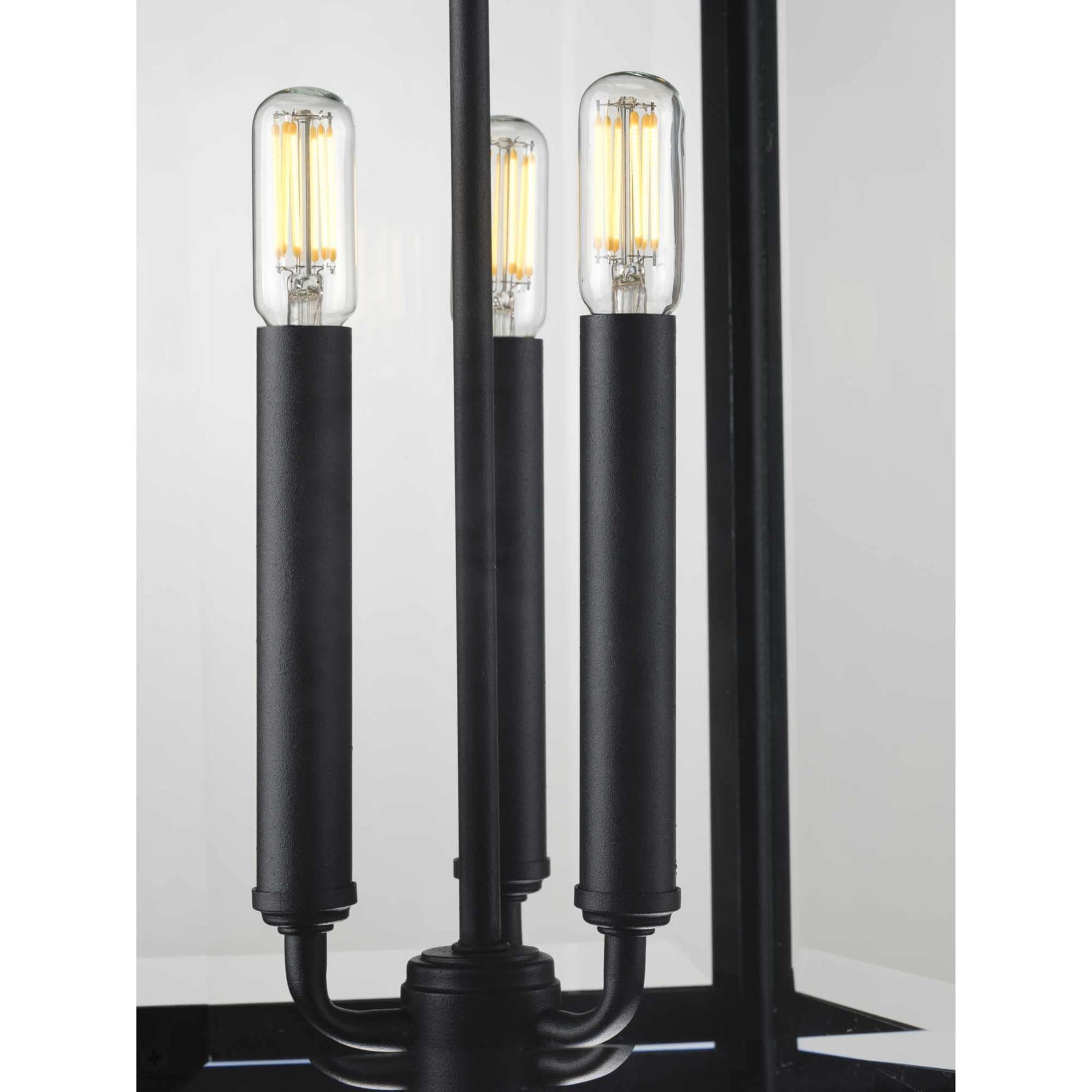 Illuminate your outdoor space with the timeless elegance of the Progress Lighting Gibbes Street Outdoor Pendant Light. Crafted with a classic black finish and clear beveled glass, this 3-light hanging lantern exudes a warm, welcoming glow perfect for adding rustic charm to your home. Its versatile design fits seamlessly into transitional or new traditional settings, making it a stunning addition to foyers, entryways, porches, or patios.