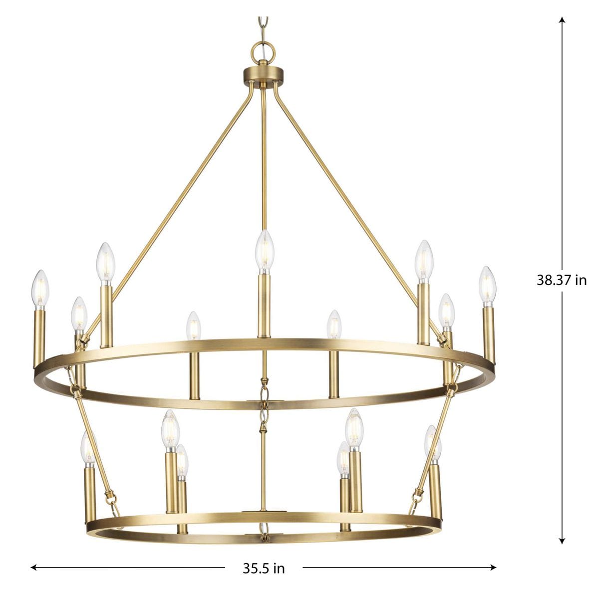 The Gilliam 15-Light Farmhouse Chandelier from Progress Lighting seamlessly combines classic elegance with modern sophistication, making it a standout centerpiece for any interior. Its open, airy design in a vintage brass finish adds timeless charm to traditional, transitional, and farmhouse-inspired spaces, delivering soft, ambient illumination.