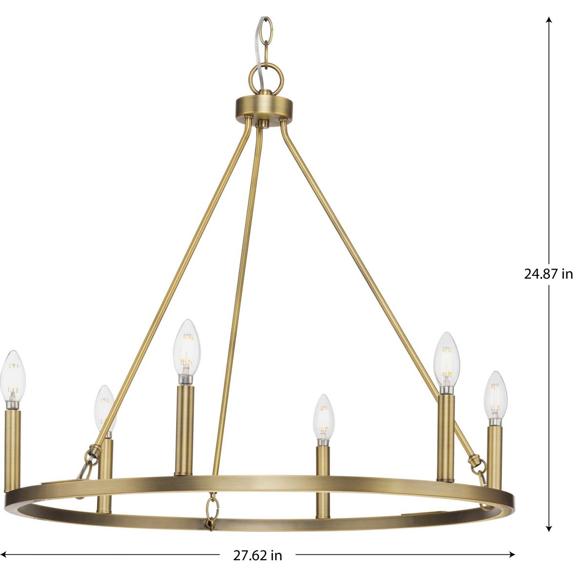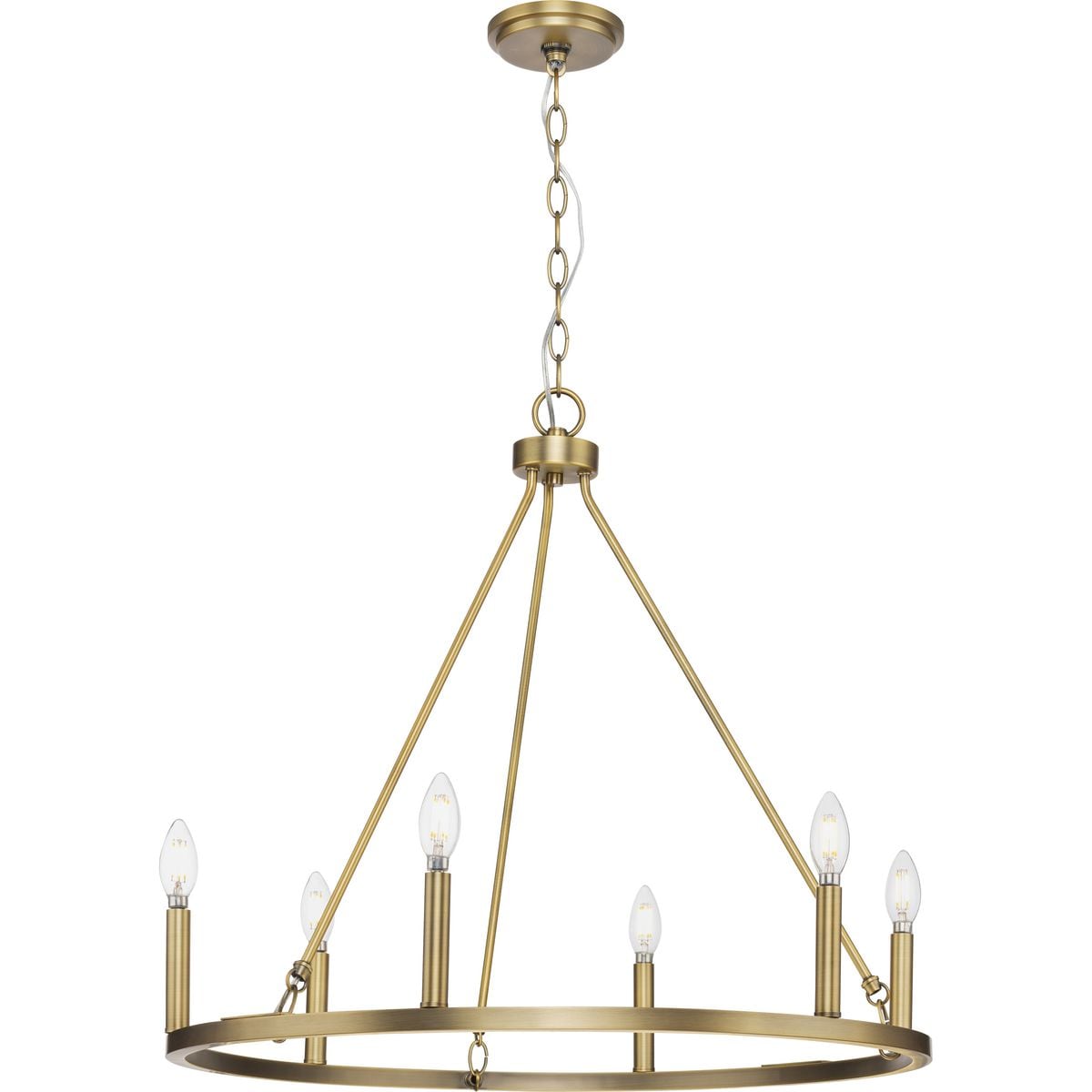 Illuminate your space with the Gilliam 6-Light Farmhouse Chandelier, a perfect blend of classic elegance and modern charm. Finished in Vintage Brass, this chandelier offers a timeless statement for any room while enhancing contemporary and farmhouse aesthetics alike. Designed with a versatile round frame, it delivers soft, ambient lighting ideal for bedrooms, dining rooms, and beyond.