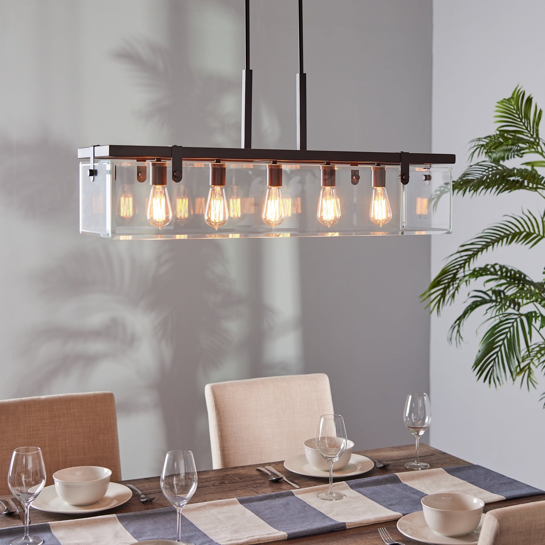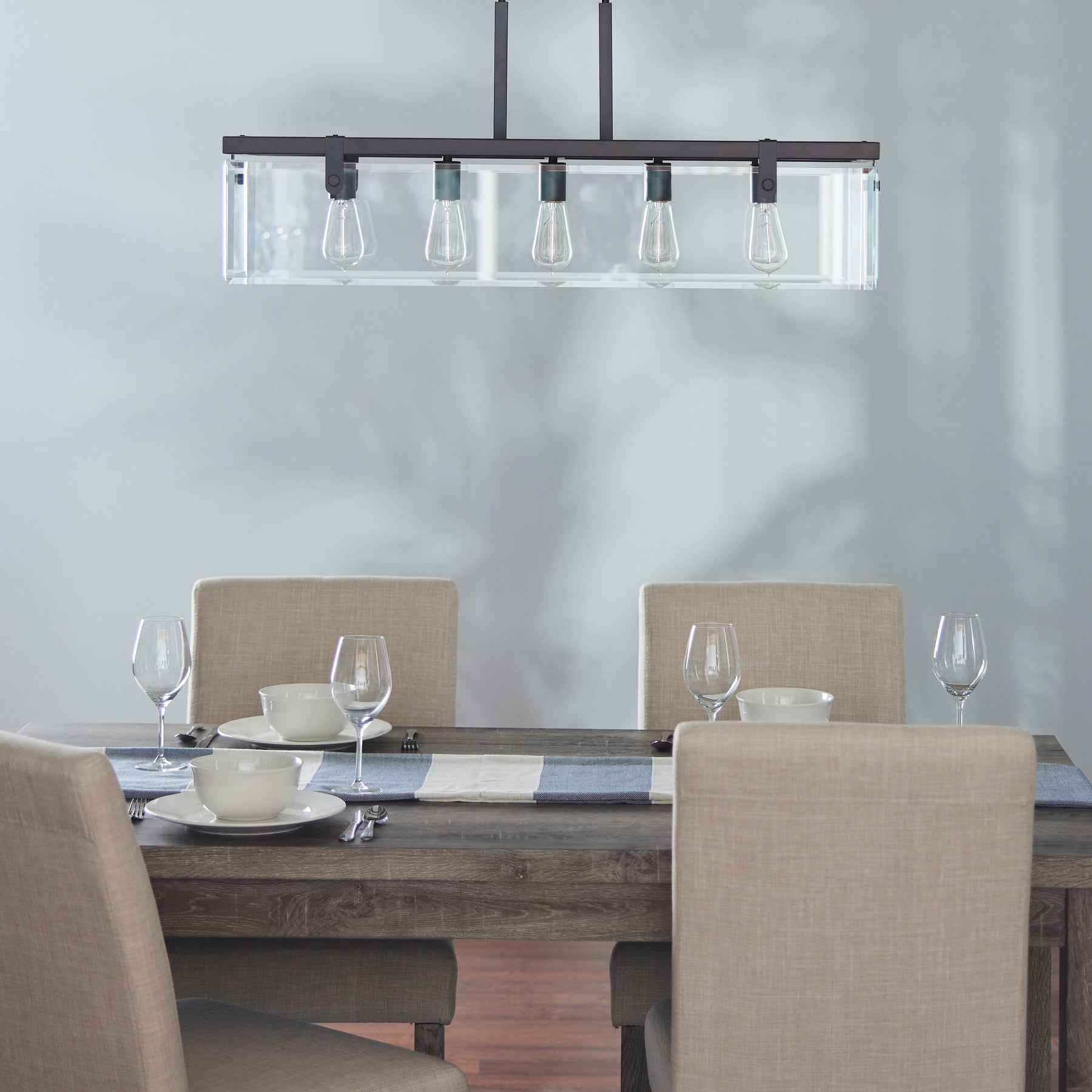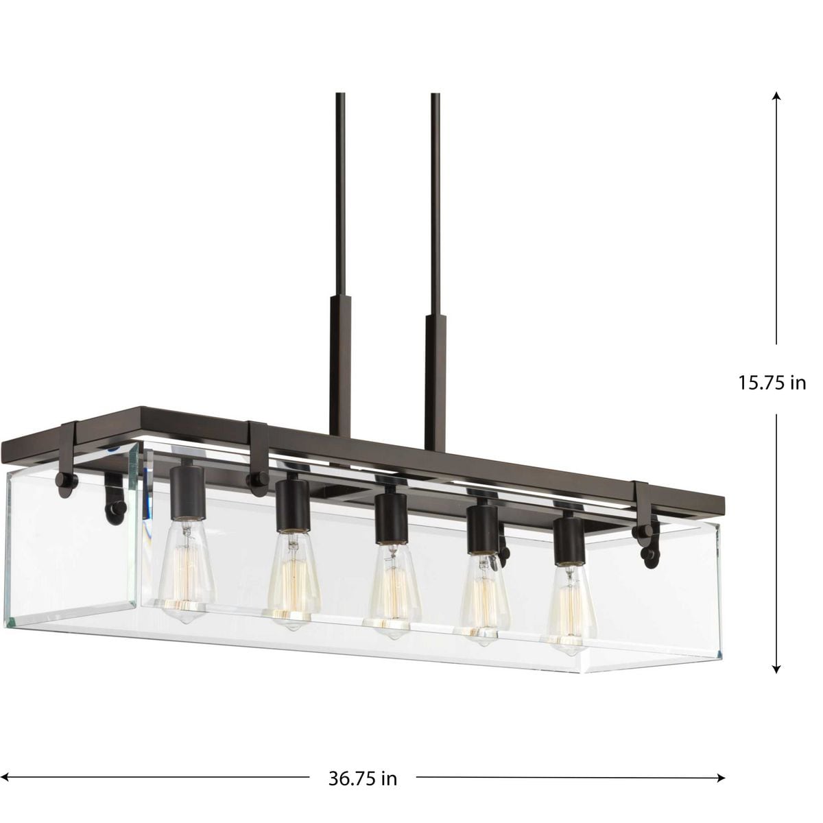 Illuminate your space with the Glayse 5-Light Chandelier by Progress Lighting, a masterpiece of modern elegance and contemporary aesthetics. Featuring an antique bronze finish and clear glass, it makes a striking addition to kitchens, dining areas, or urban industrial settings.