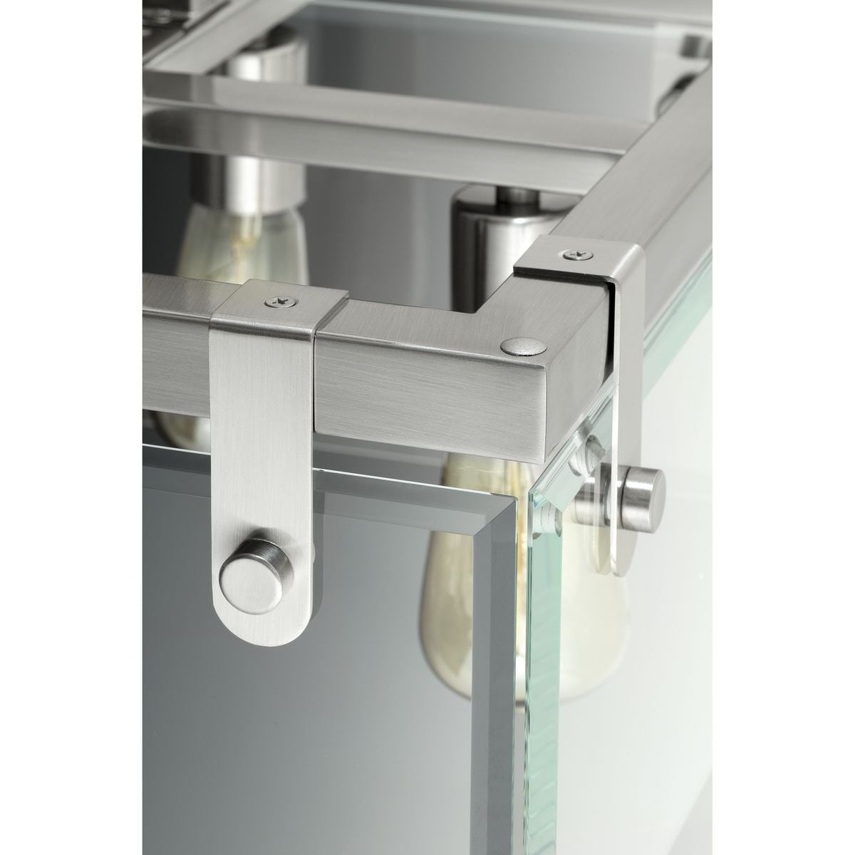 High-Quality Materials: Crafted from durable steel with a beautiful brushed nickel finish and crisp clear glass beveled panels.