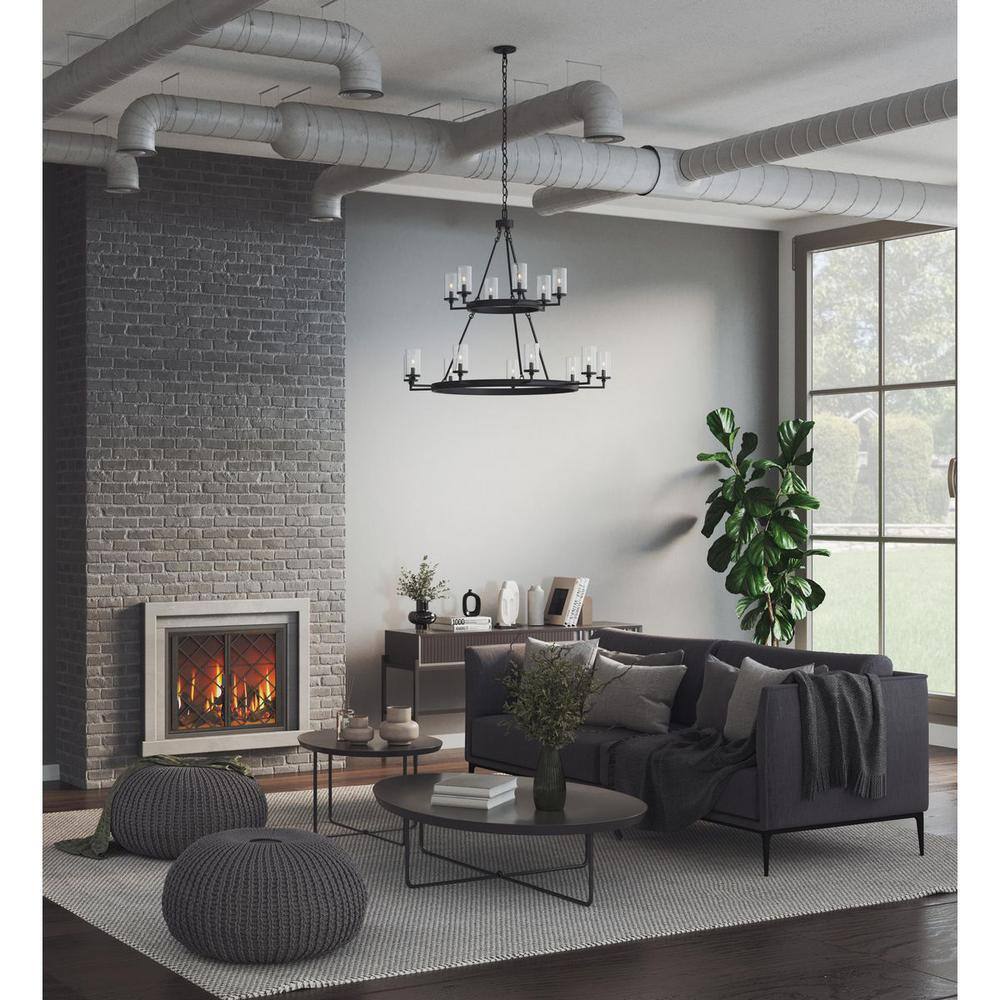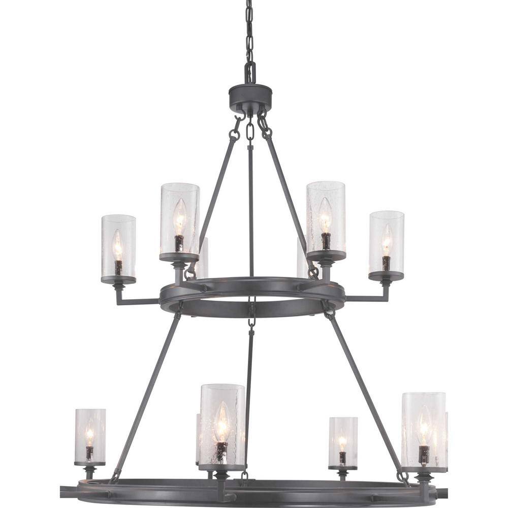 Illuminate your space with the Gresham Collection 15-Light Farmhouse Chandelier by Progress Lighting. This striking fixture features a robust graphite frame with hand-forged details complemented by clear seeded glass shades. Ideal for creating a dramatic focal point in great rooms or large foyers, its Transitional and Farmhouse design adds both elegance and functionality.