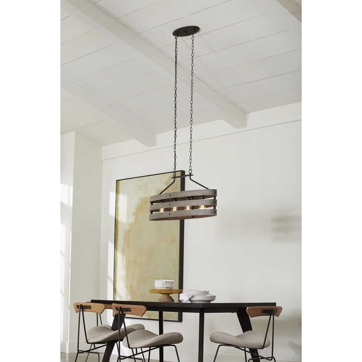 Enhance your kitchen decor with the Gulliver 4-Light Farmhouse Kitchen Island Light, featuring a dual-tone graphite finish and weathered gray accents. This stunning fixture embodies a rustic yet modern aesthetic, perfect for farmhouse, urban industrial, or coastal settings. It's equipped with a 72-inch chain for adjustable height to fit various ceiling requirements.
