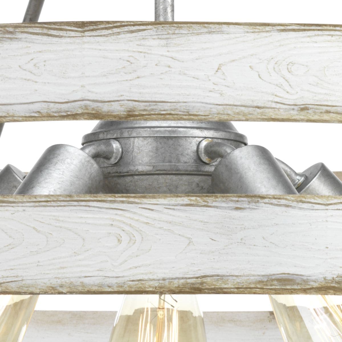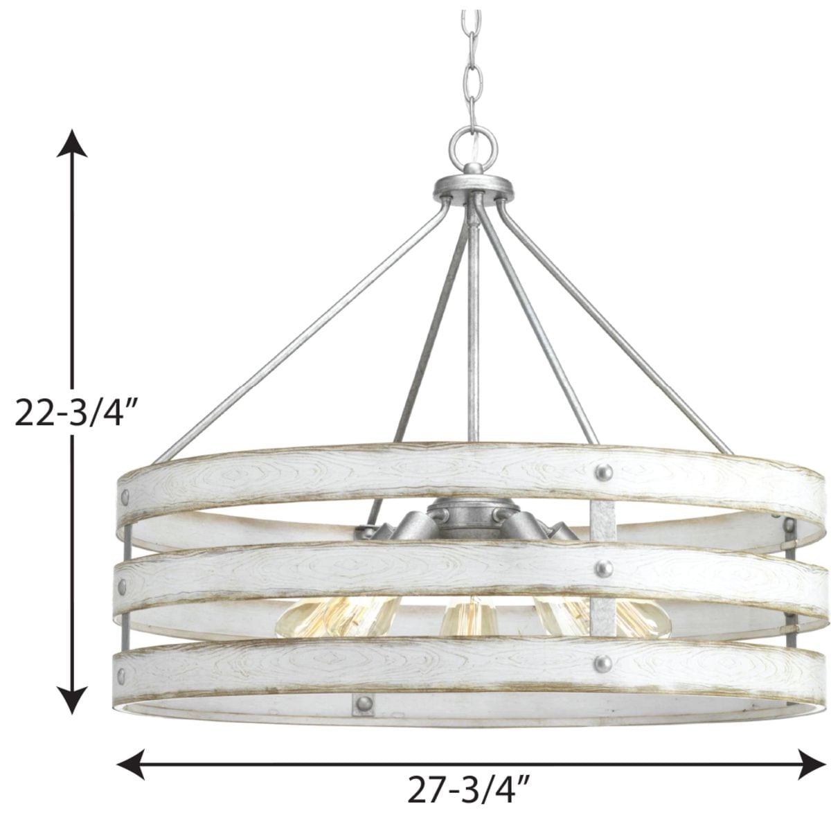 Illuminate your space with the industrial charm of the Gulliver 5-Light Galvanized Drum Pendant by Progress Lighting. Its open-cage design is characterized by weathered gray bands perfect for farmhouse and urban settings. Achieve both style and functionality with its versatile appeal and robust construction.