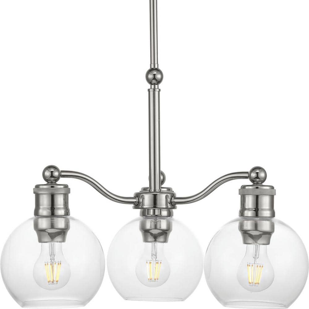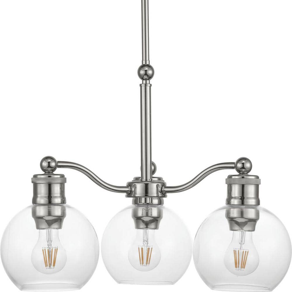 Illuminate your space with timeless elegance using the Hansford 3-Light Chandelier by Progress Lighting. Featuring a polished nickel finish and clear glass spheres, this chandelier brings a sophisticated flair to any room. Perfect for farmhouse, coastal, or industrial aesthetics.