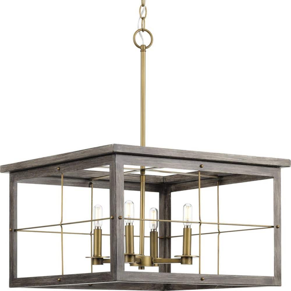 Progress Lighting Hedgerow Collection 4-Light Aged Oak Farmhouse Chandelier Light