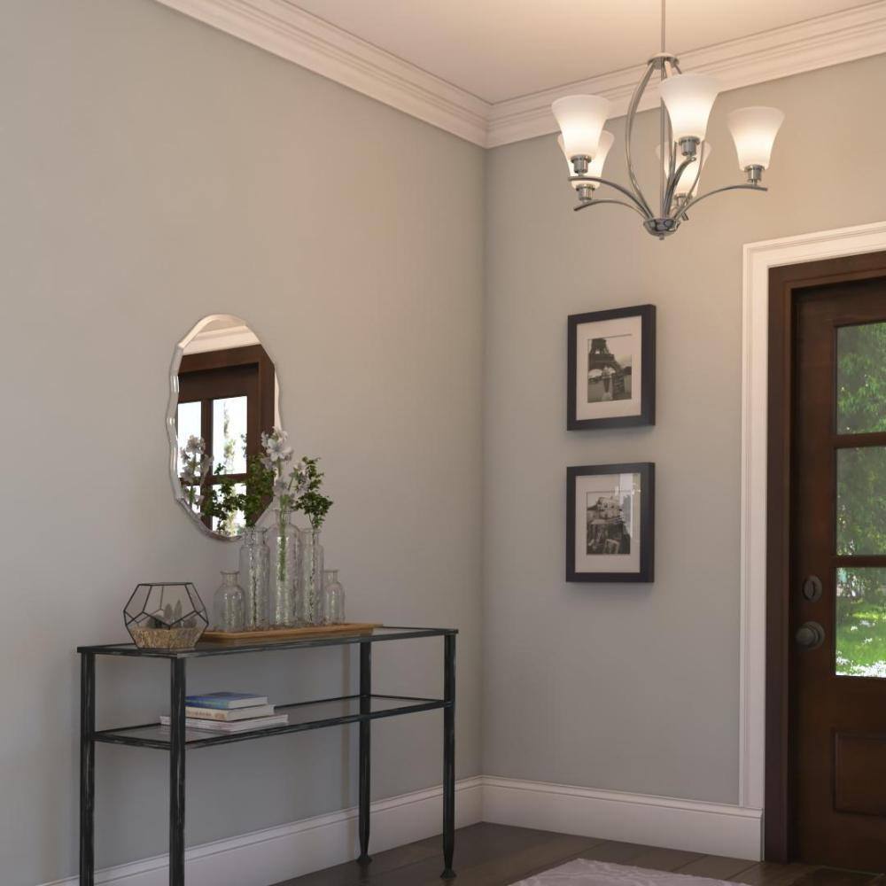 Progress Lighting Joy Collection 5-Light Brushed Nickel Etched White Inside Glass Traditional Chandelier Light
