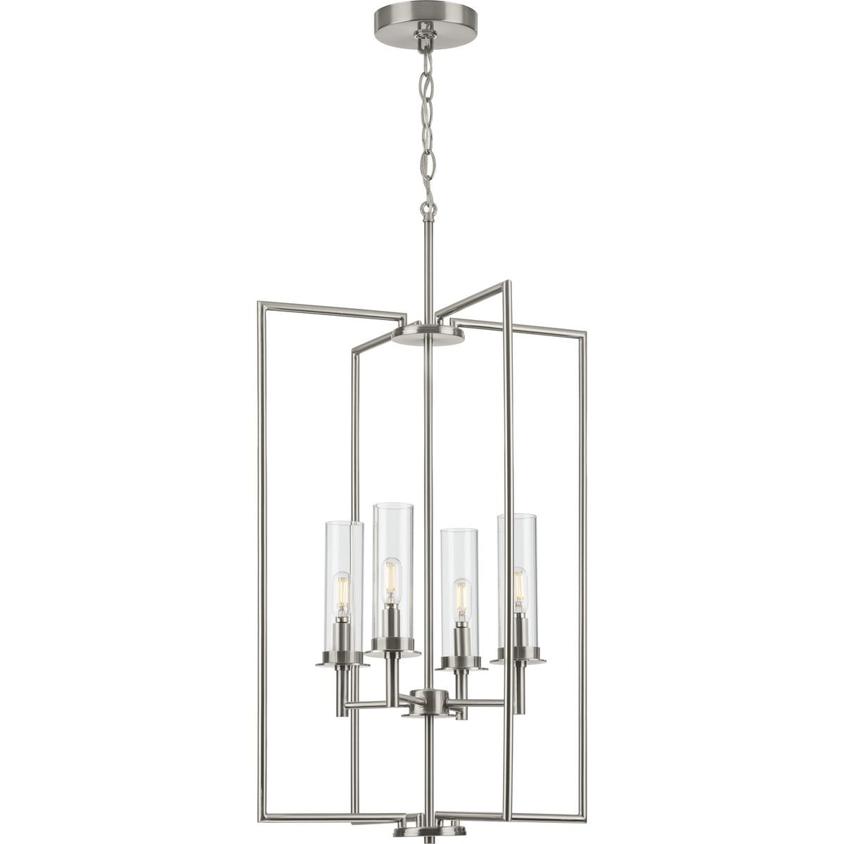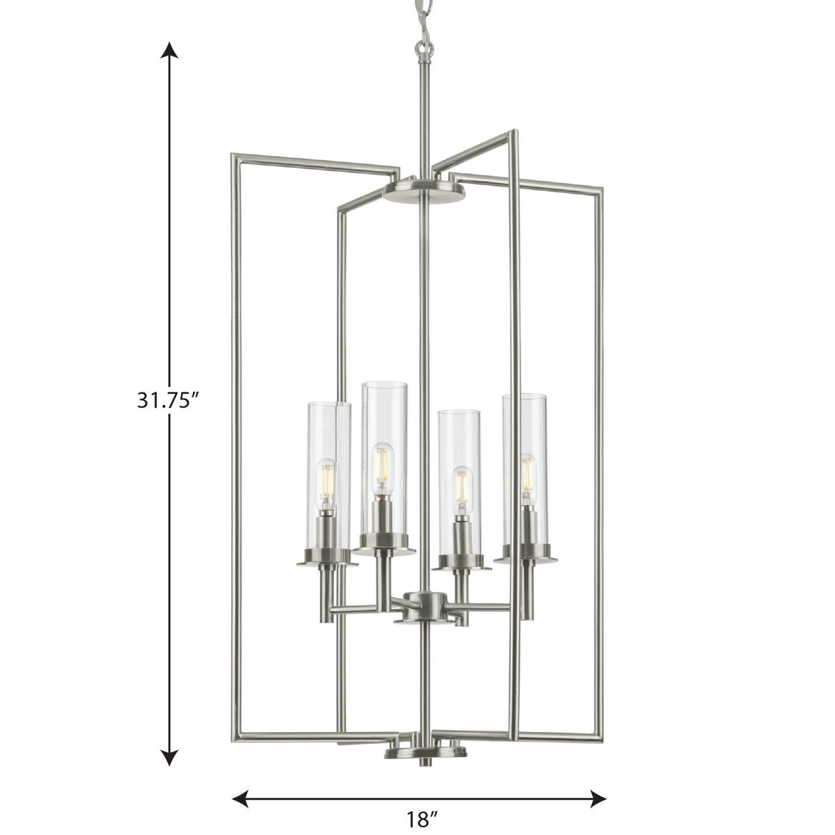Illuminate your space with the stylish Kellwyn 4-Light Brushed Nickel Pendant, blending modern and traditional elements. Its classic cage design and clear glass shades offer a luxurious glow, while sturdy steel construction ensures long-lasting durability, making it an ideal addition to any entryway or dining area.