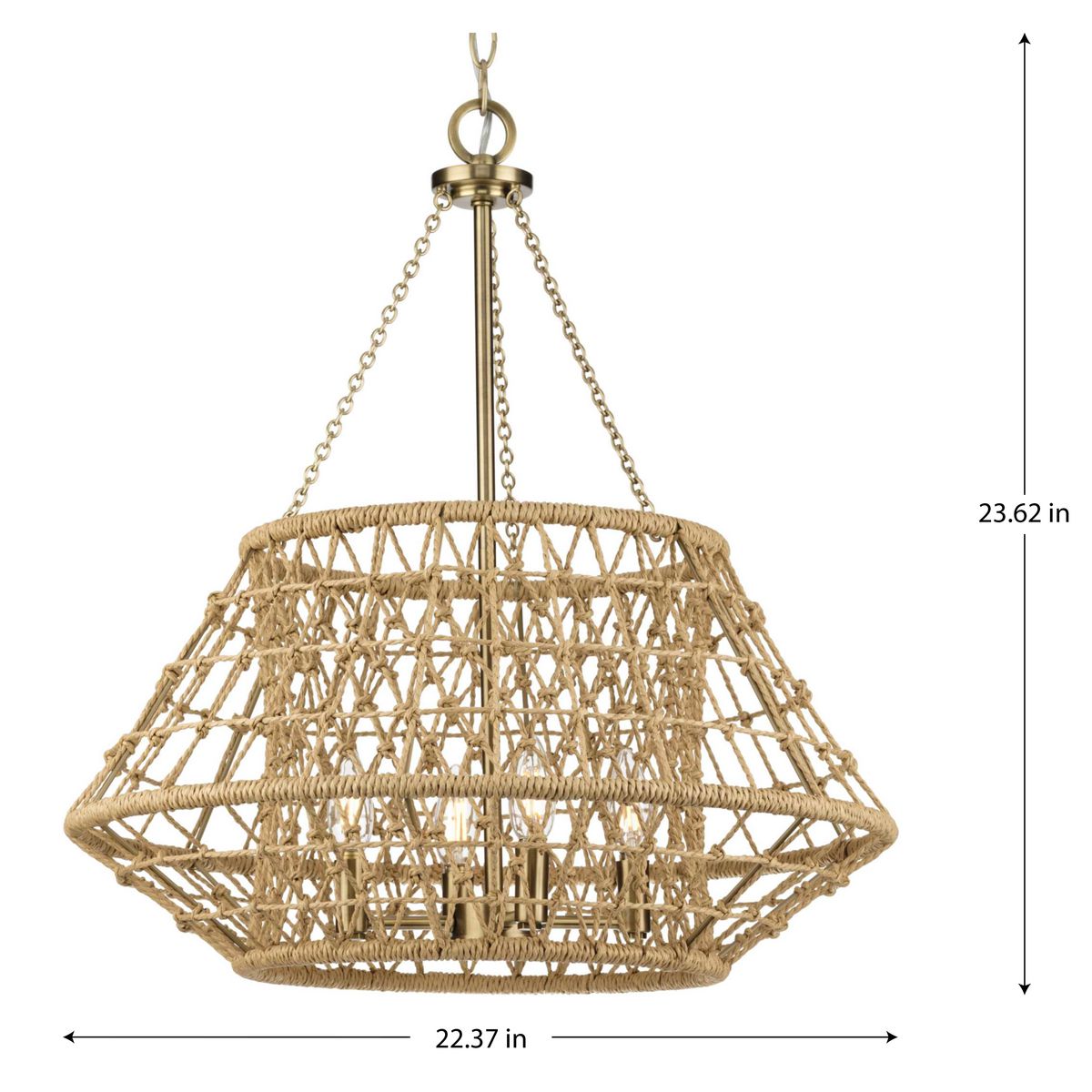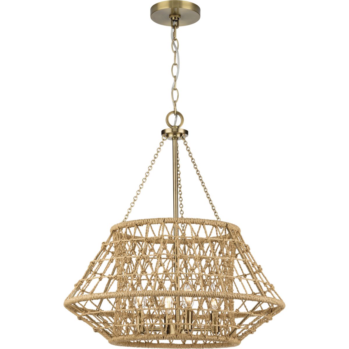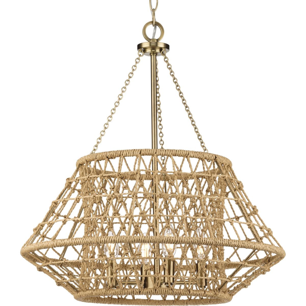 Illuminate your space with the Laila 4-Light Coastal Chandelier from Progress Lighting, where artisanal craftsmanship meets sophisticated style. Wrapped in hand-knotted jute strands, this fixture offers an airy, coastal vibe perfect for any room in your home. Enjoy soft ambient illumination that complements any global or transitional decor.