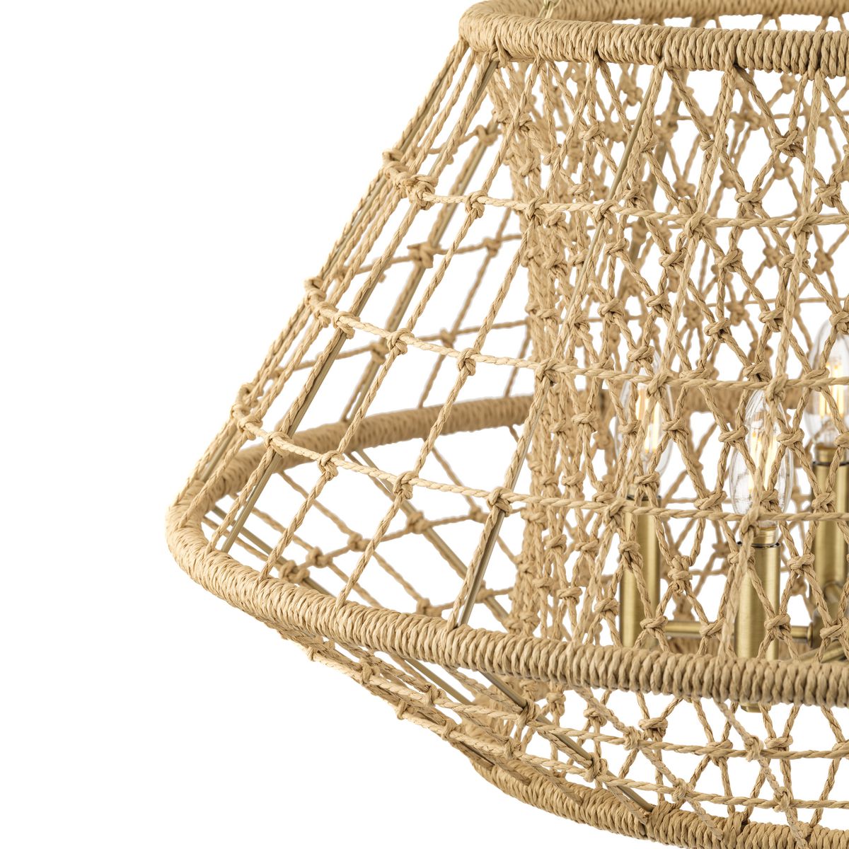 Embrace the serene allure of coastal living with the Laila 5-Light Coastal Chandelier. Its hand-knotted jute strands weave an enchanting double-cage design that casts playful shadows, transforming your dining room into a tranquil oasis. Pair this fixture with a light wood table or crisp white interiors to accentuate its natural charm. As a beacon of refined artistry, the Laila chandelier epitomizes the marriage of modern sophistication with coastal warmth, making it an essential piece for luxurious, nature-inspired interiors.
