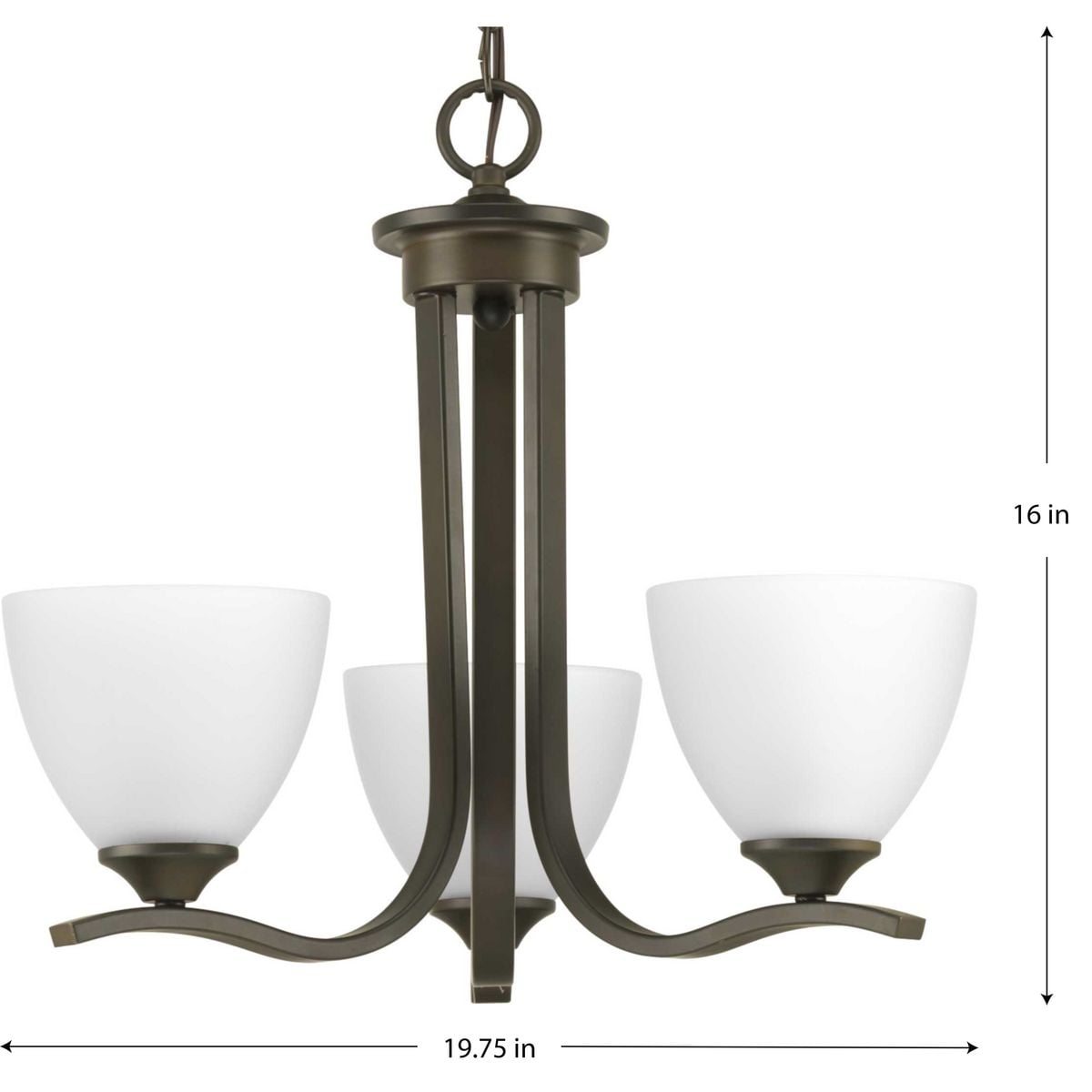 Illuminate your space with the Laird 3-Light Antique Bronze Chandelier from Progress Lighting. Perfect for traditional and transitional settings, this chandelier combines an elegant antique bronze finish with etched glass shades to create a warm, inviting ambiance for any room. Designed for reliability and functionality, it enhances your space with exceptional style and quality.