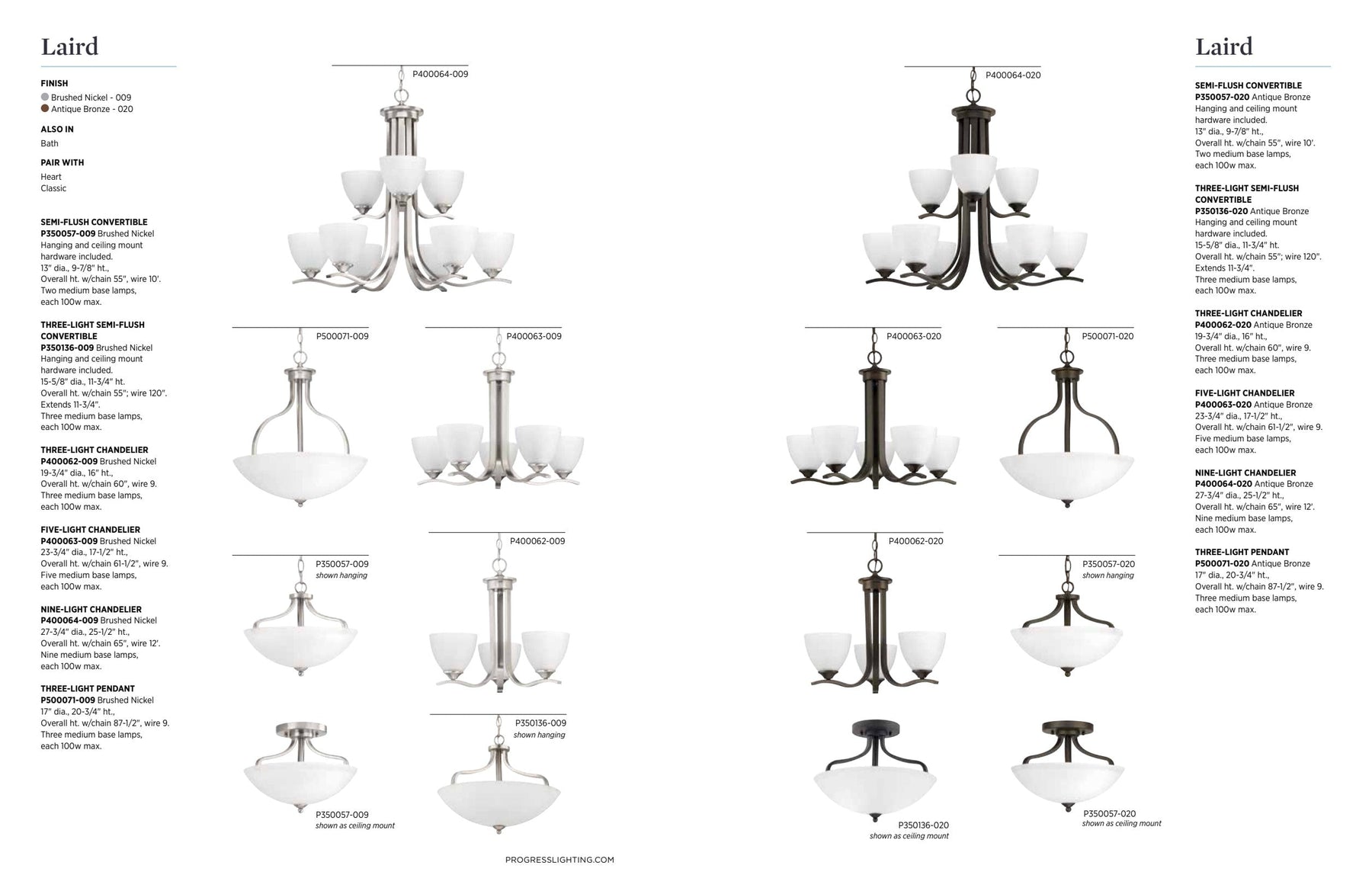 The Laird 3-Light Pendant from Progress Lighting elegantly combines transitional design with functional illumination. Its brushed nickel finish and etched glass bowl create a contemporary touch, making it an ideal addition for kitchens, dining areas, or living rooms.