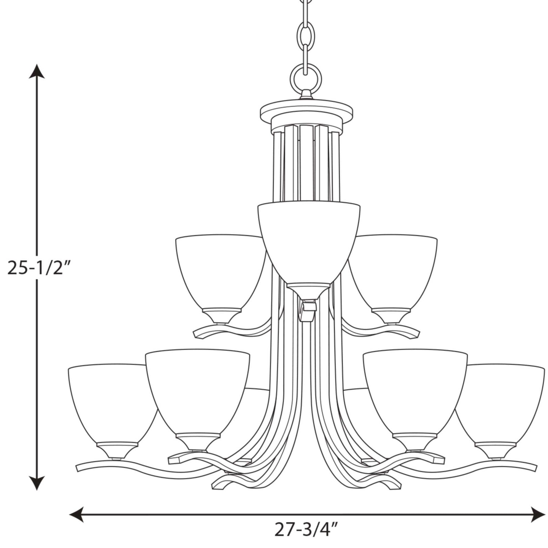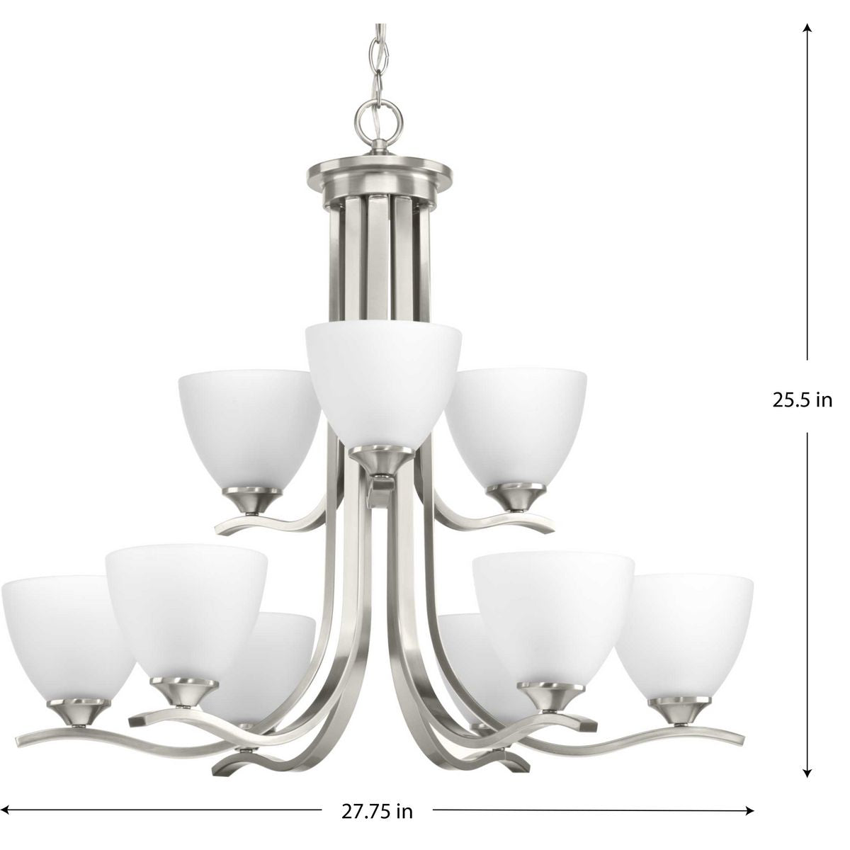 Elevate your space with the Laird 9-Light Chandelier, expertly crafted by Progress Lighting. Featuring a sophisticated brushed nickel finish and elegant etched glass shades, this chandelier brings both style and ample illumination to transitional and traditional settings.