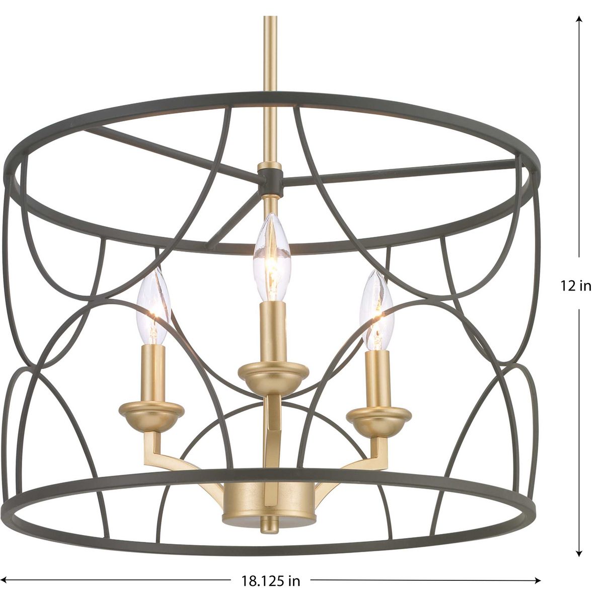Elevate your interior with the Landree 3-Light Matte Black Traditional Chandelier from Progress Lighting. This stunning fixture blends classic design with modern elements, showcasing a decorative open-frame that elegantly houses three candelabra lights. Ideal for enhancing dining rooms, foyers, or living spaces, its adjustable height and chic black finish ensure a versatile fit for various ceiling heights and settings.