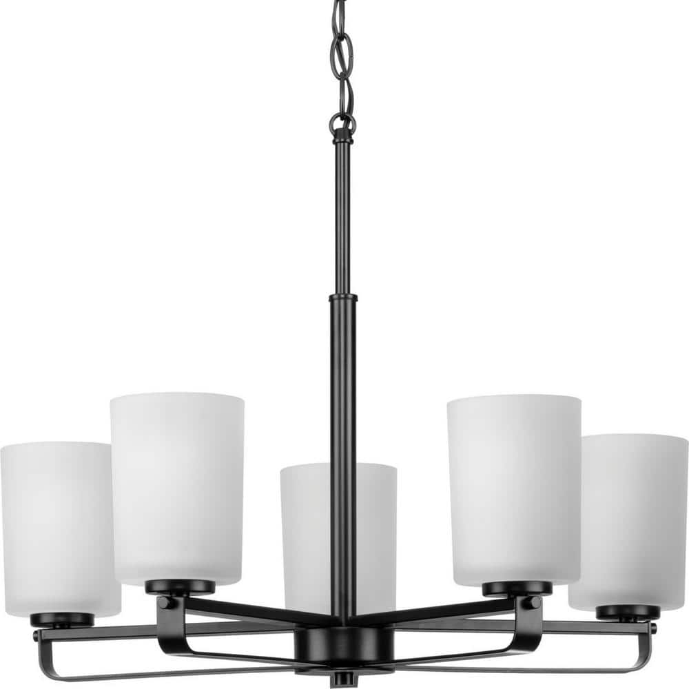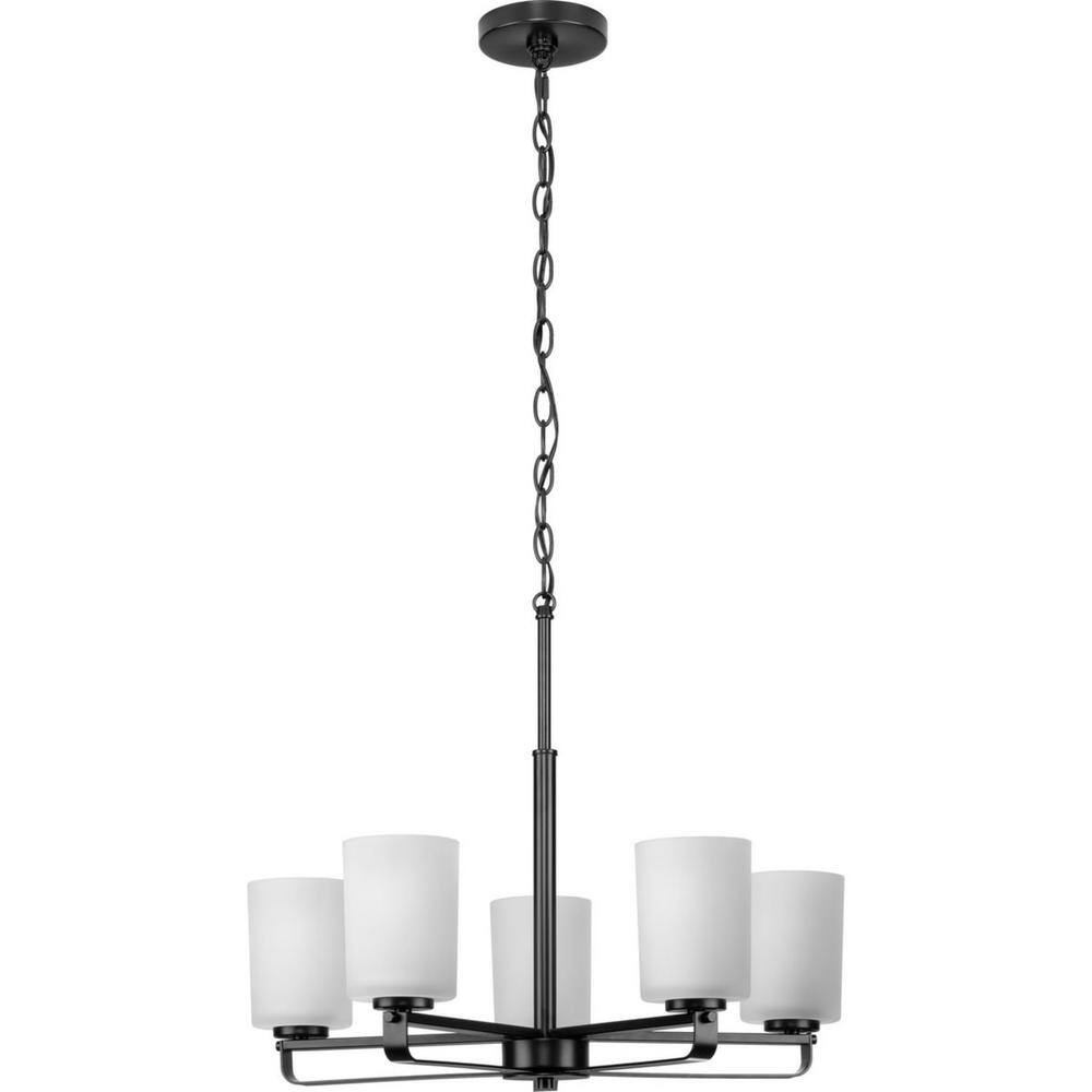 Progress Lighting League Collection 5-Light Matte Black Etched Glass Contemporary Chandelier Light