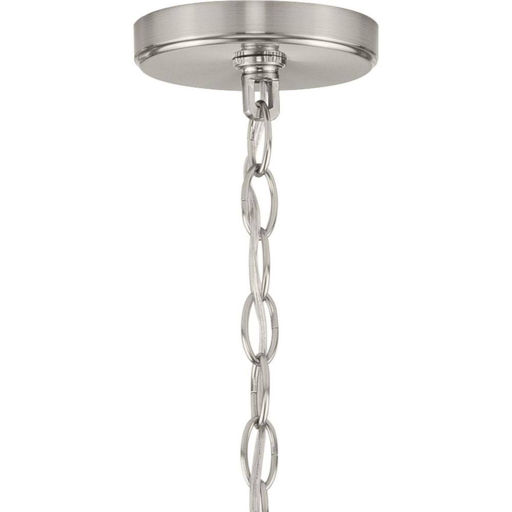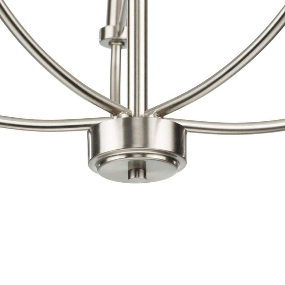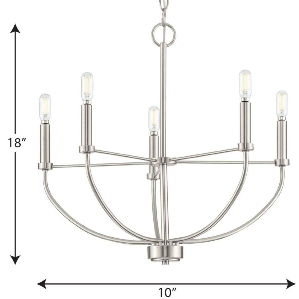 The Leyden 5-Light Brushed Nickel Farmhouse Chandelier by Progress Lighting adds a timeless touch of elegance to any room. With its curved arms, antique candlestick design, and a hint of brushed nickel modernity, it delivers both style and generous illumination, making it ideal for transitional and farmhouse decor.