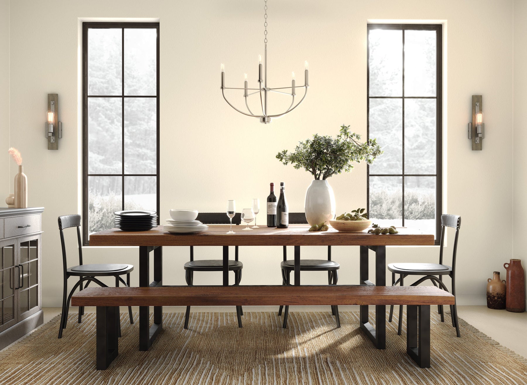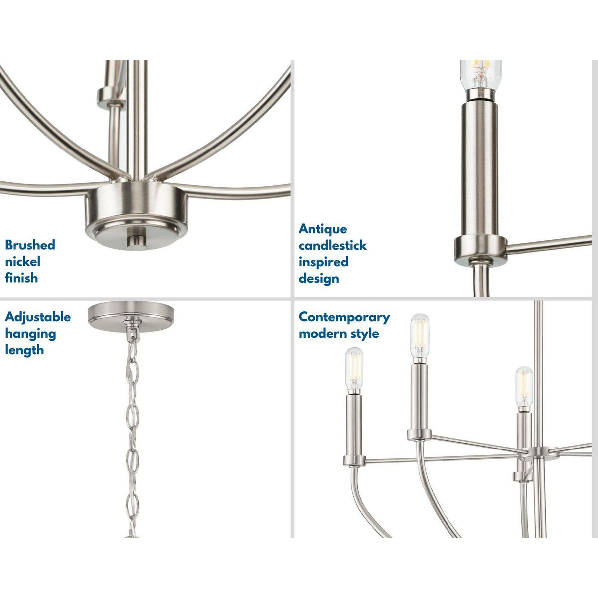 Illuminate your home with the exquisite Leyden 5-Light Chandelier by Progress Lighting, featuring a stunning brushed nickel finish perfect for transitional or farmhouse settings. Crafted from durable steel, this chandelier offers a timeless design with a modern touch, enhancing any living space with its elegant candlestick-inspired lighting.