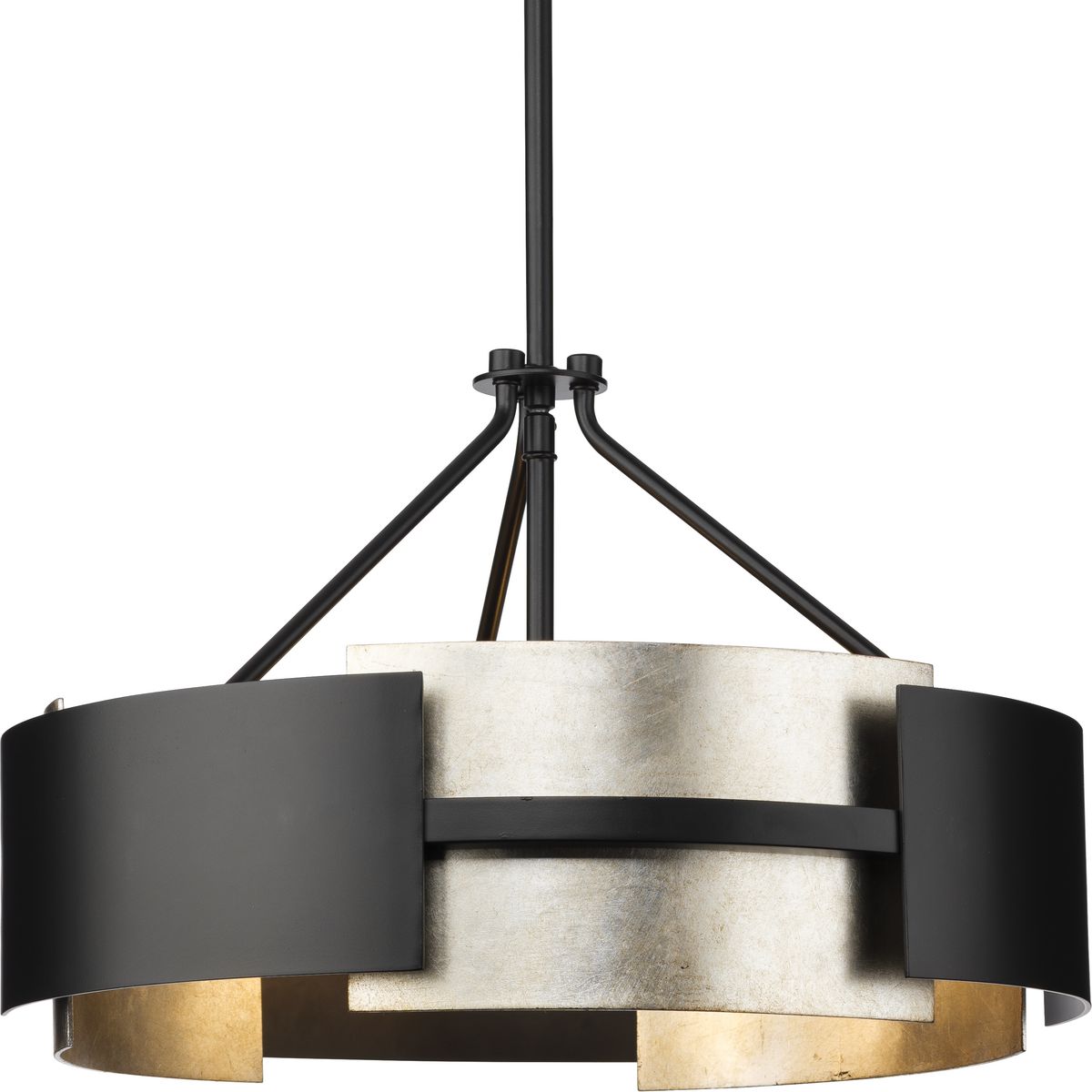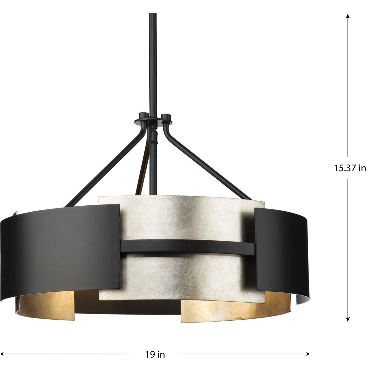 Elevate your space's ambiance with the Lowery 3-Light Convertible Pendant/Semi-Flush by Progress Lighting. Its sophisticated matte black frame harmoniously pairs with aged silver leaf accents, creating an industrial chic appeal ideal for contemporary spaces. Convertible design offers versatile installation options to suit any room's needs.