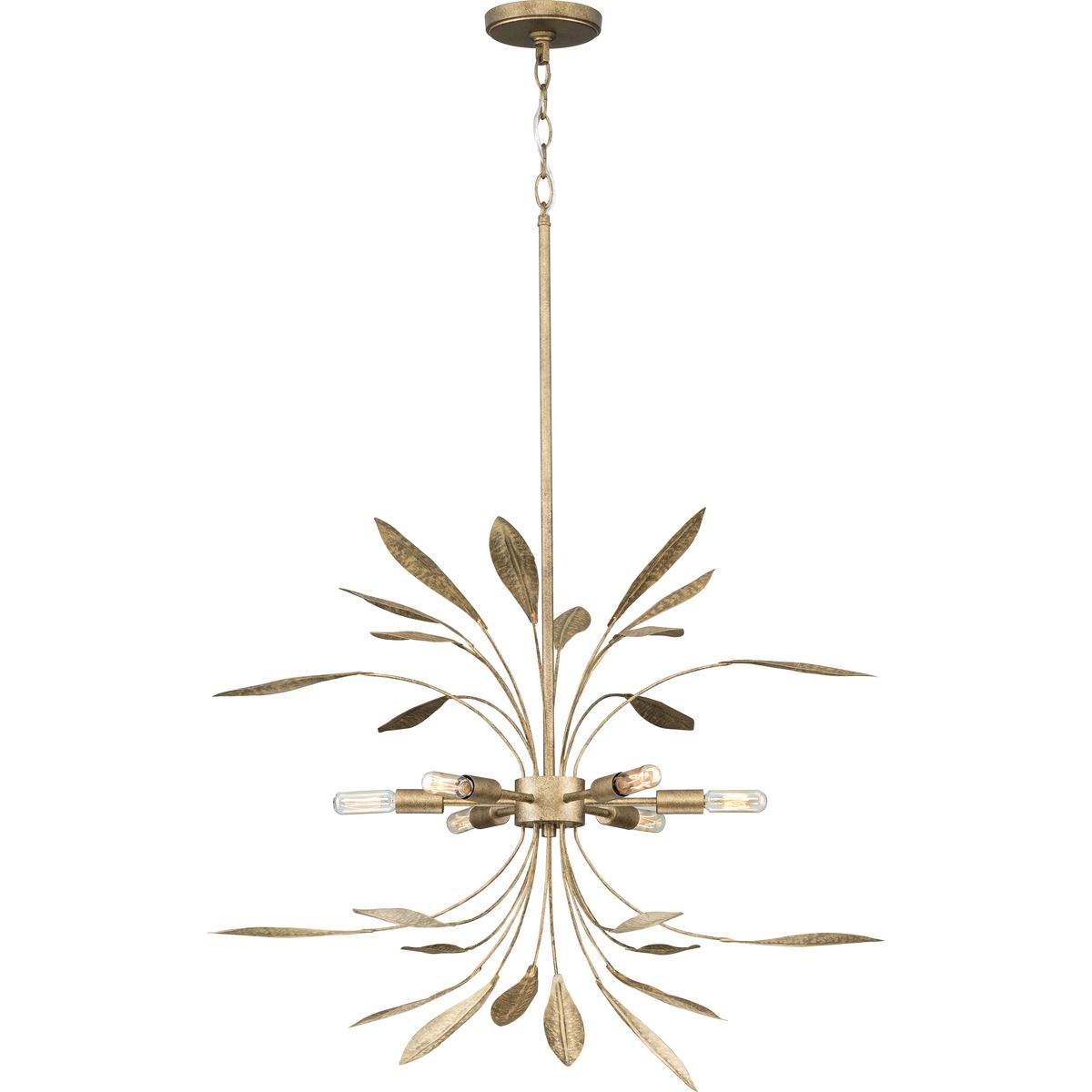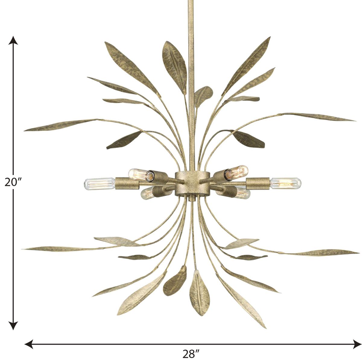 Illuminate your space with the Mariposa 6-Light Antique Gold Pendant Light by Progress Lighting. This glam geometric fixture features delicate branch-like arms in a luxurious antique gold finish, adding elegance to any modern or transitional room. Its multidirectional design ensures your space is both bright and stylish.