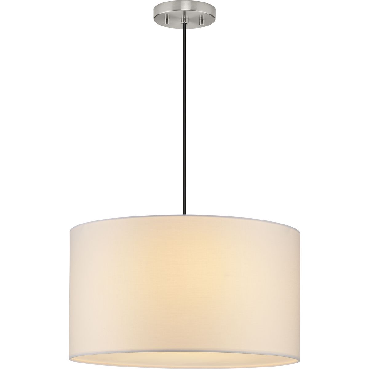 Transform any room with the Markor 3-Light White Linen Pendant Light from Progress Lighting. This transitional drum pendant features a fabric white linen shade and includes three interchangeable canopies—Brushed Nickel, Matte Black, and Vintage Brass—allowing you to customize your space's decor. With a glare-free diffuser and adjustable hanging height, this fixture brings both functionality and style to modern interiors.