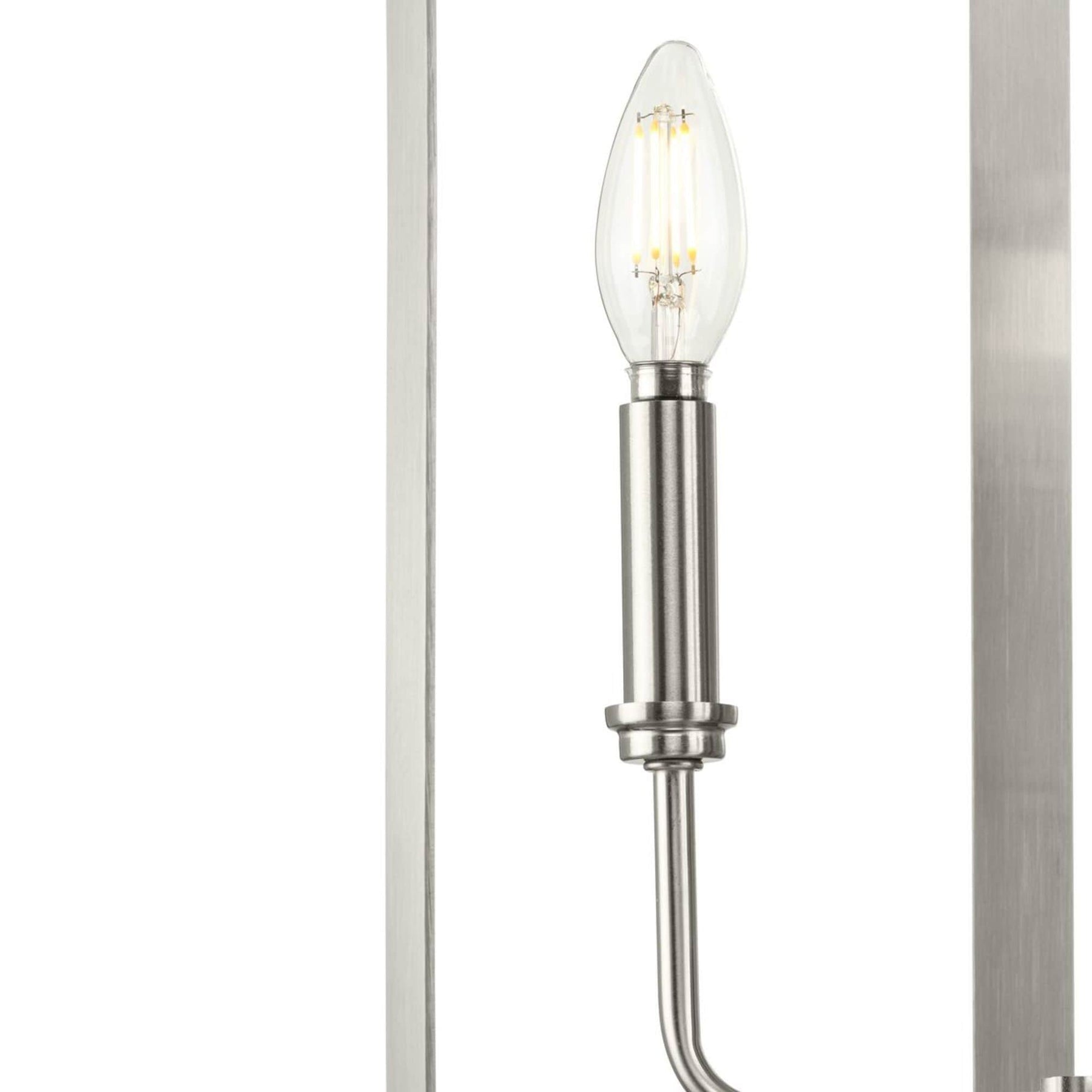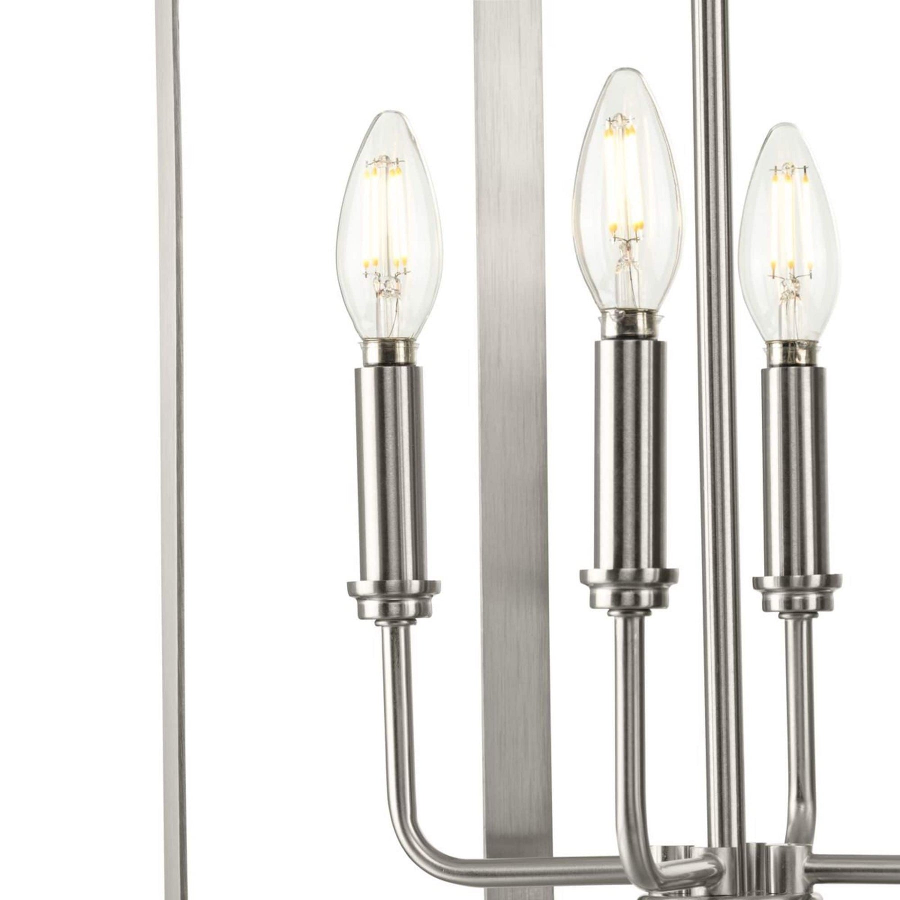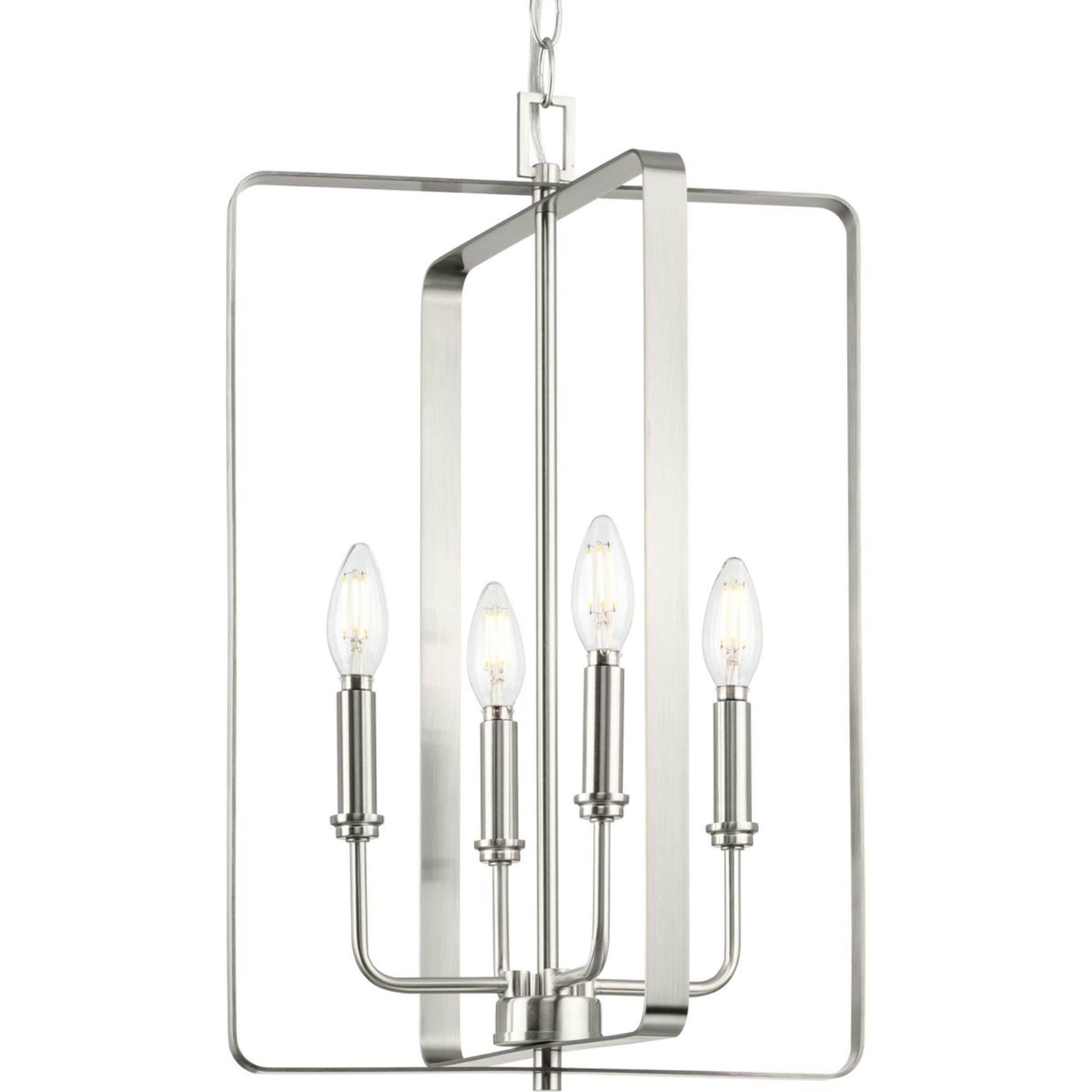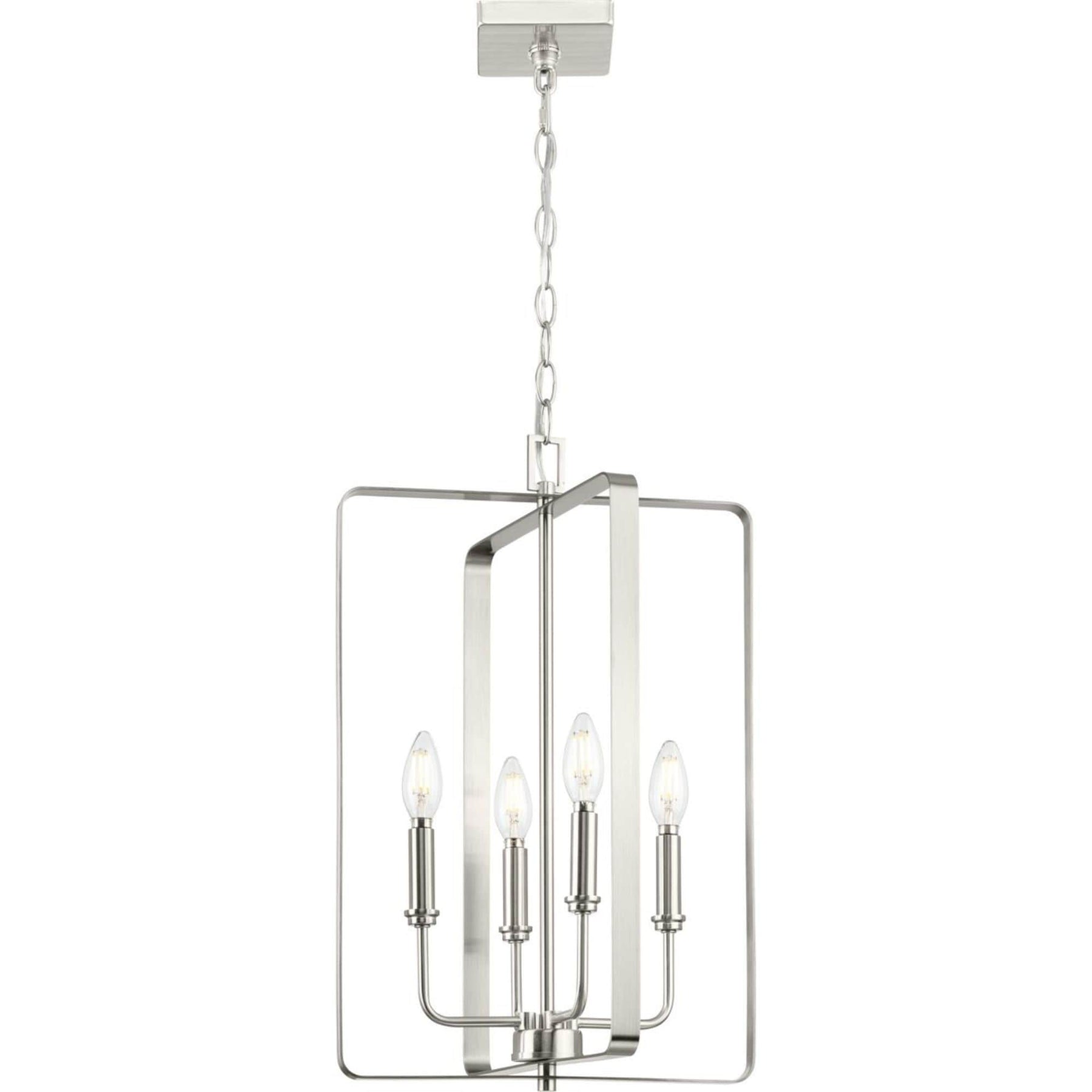 The McColl 4-Light Brushed Nickel Chandelier by Progress Lighting elevates any transitional interior with its modern cage design and luminous brushed nickel finish. Perfect for hallways, foyers, and living spaces, this chandelier offers an open design that delivers ample illumination while maintaining a sleek, sophisticated look.