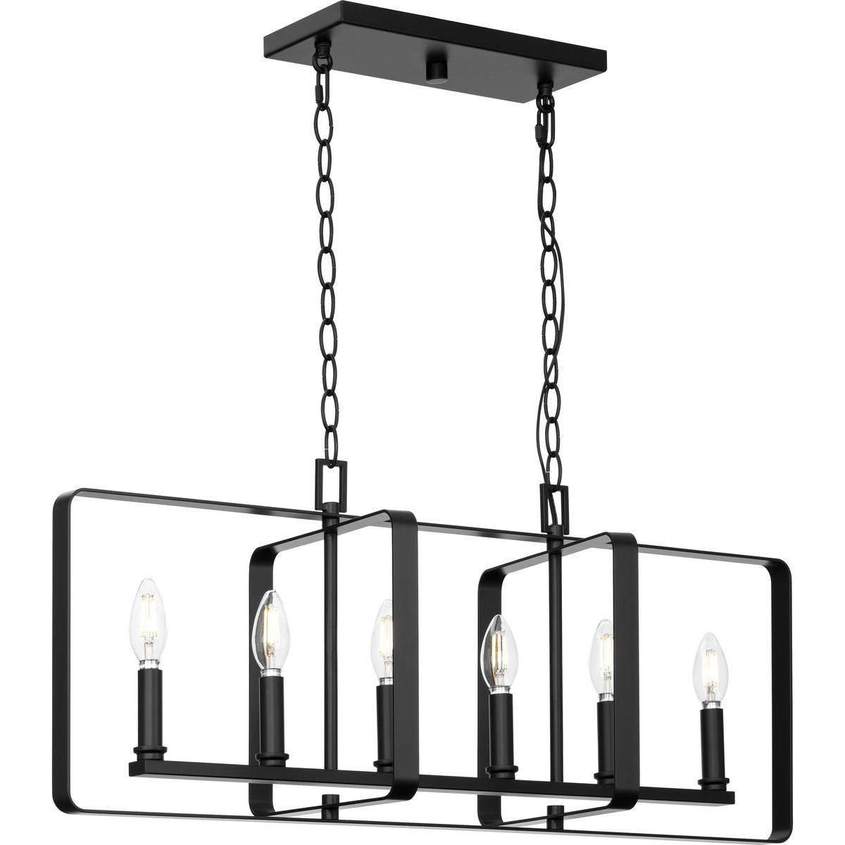 Progress Lighting McColl 6-Light Matte Black Transitional Linear Large Hanging Kitchen Island Light