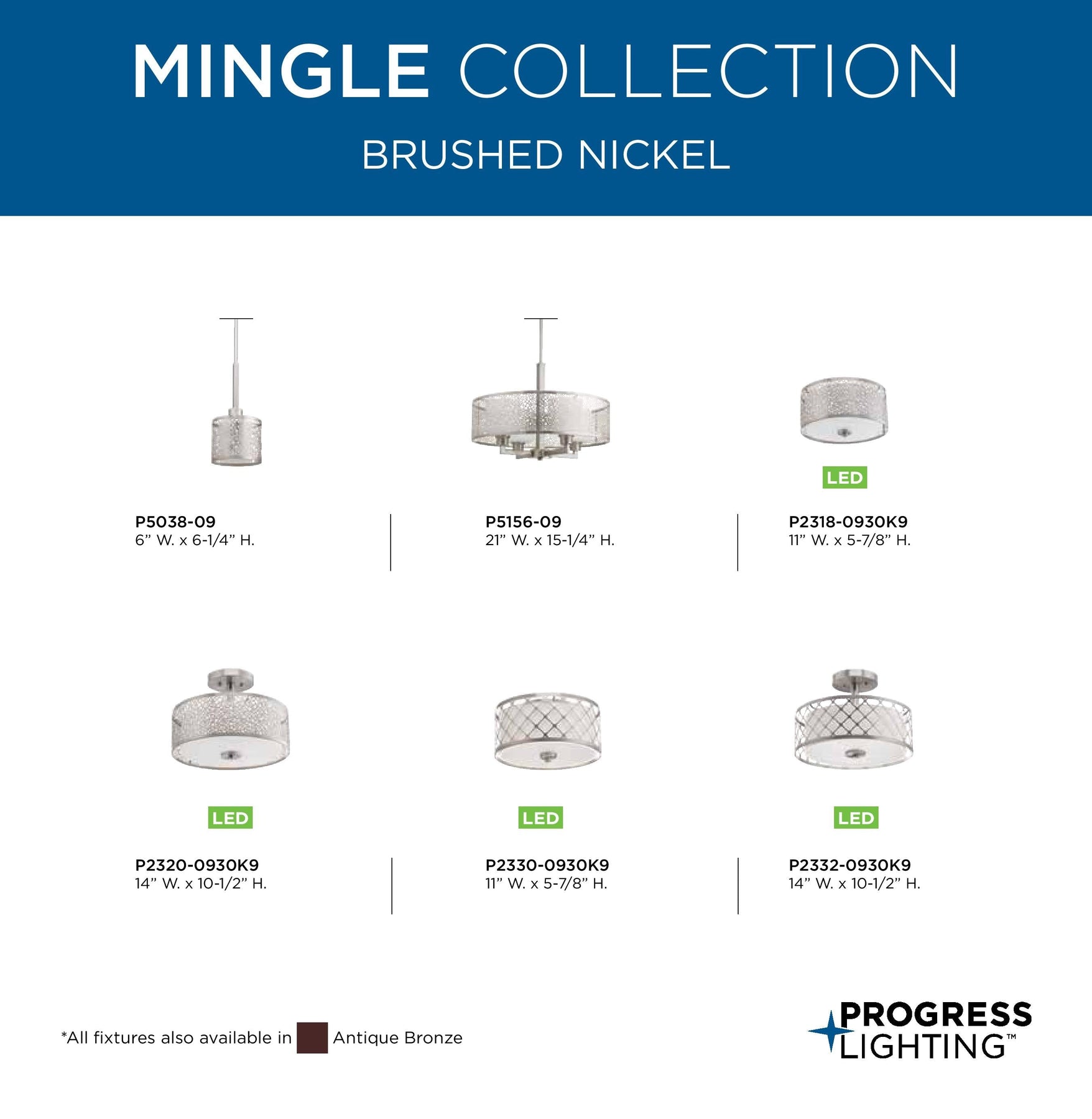 • Brushed Nickel: Elegant and versatile finish adds contemporary appeal.