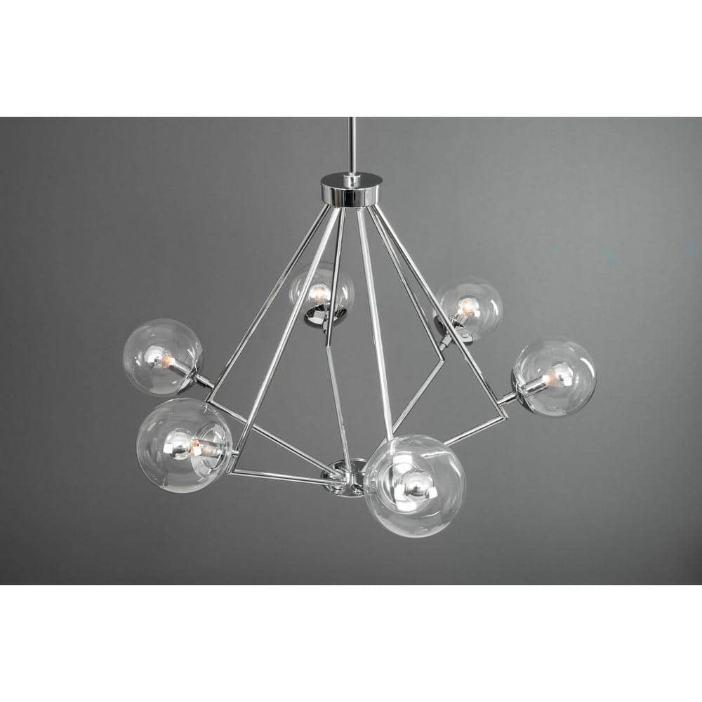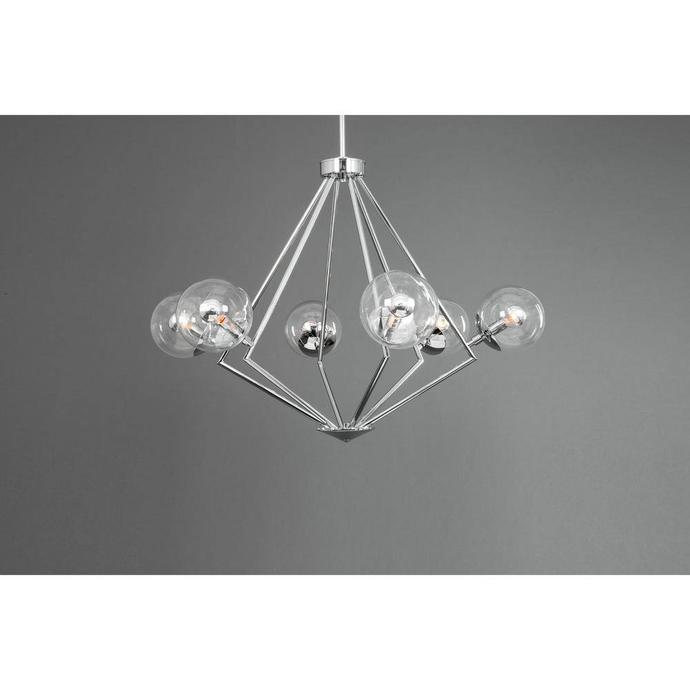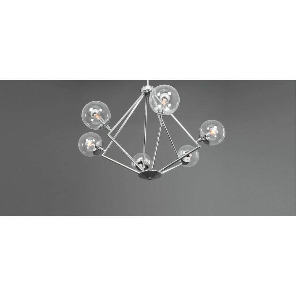 Progress Lighting Mod Collection 6-Light Polished Chrome Clear Glass Mid-Century Modern Chandelier Light