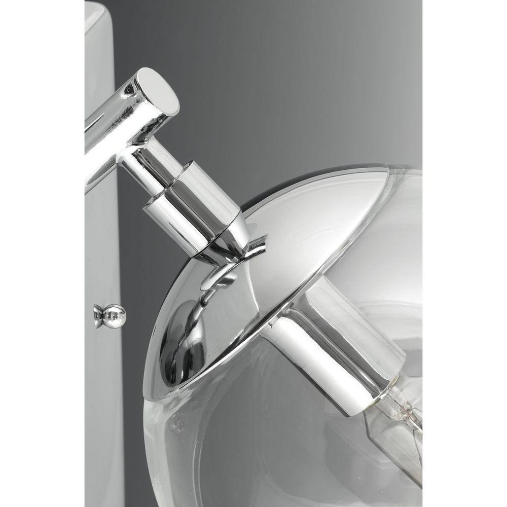 Illuminate your space with the Mod Collection 6-Light Chandelier by Progress Lighting, featuring a sleek linear design and polished chrome finish. Mid-century modern style meets function with clear glass spherical shades, offering a perfect platform for vintage-inspired bulbs. Ideal for adding a touch of elegance to dining rooms, kitchen islands, or living rooms.