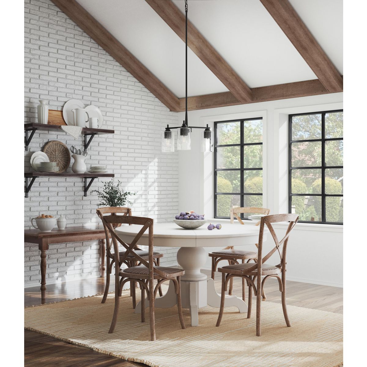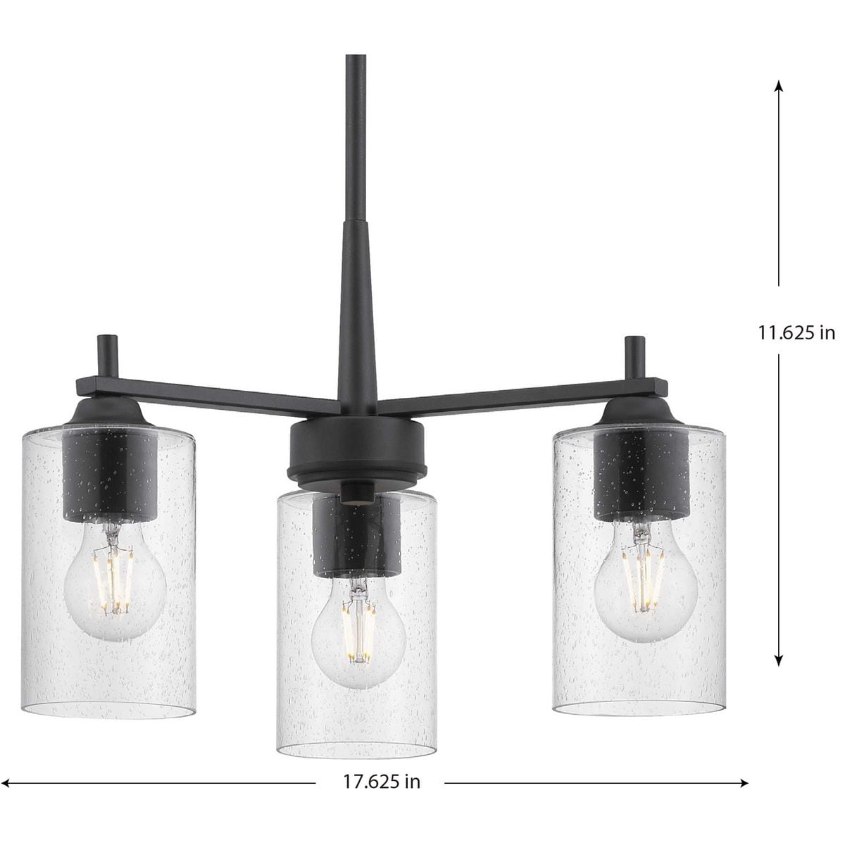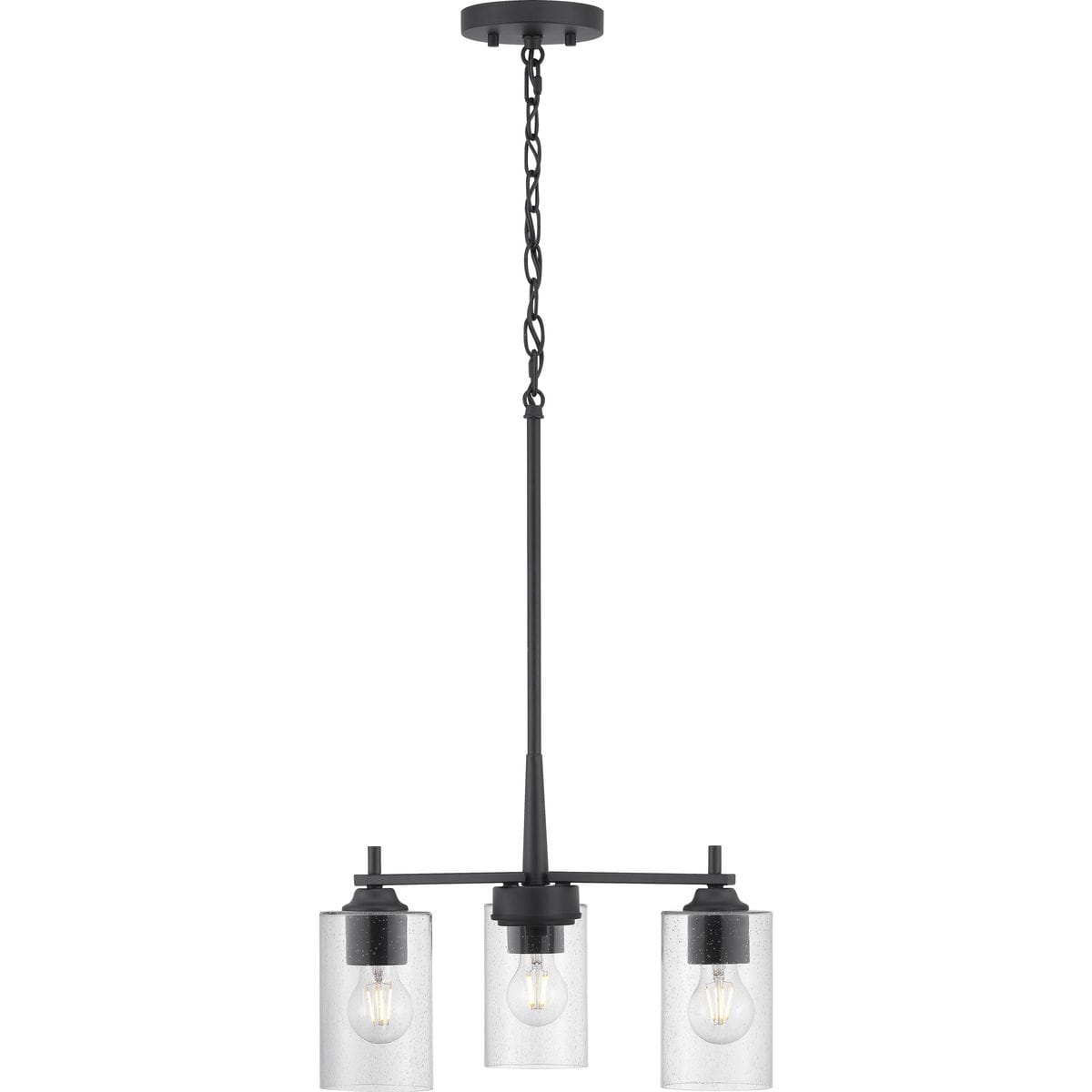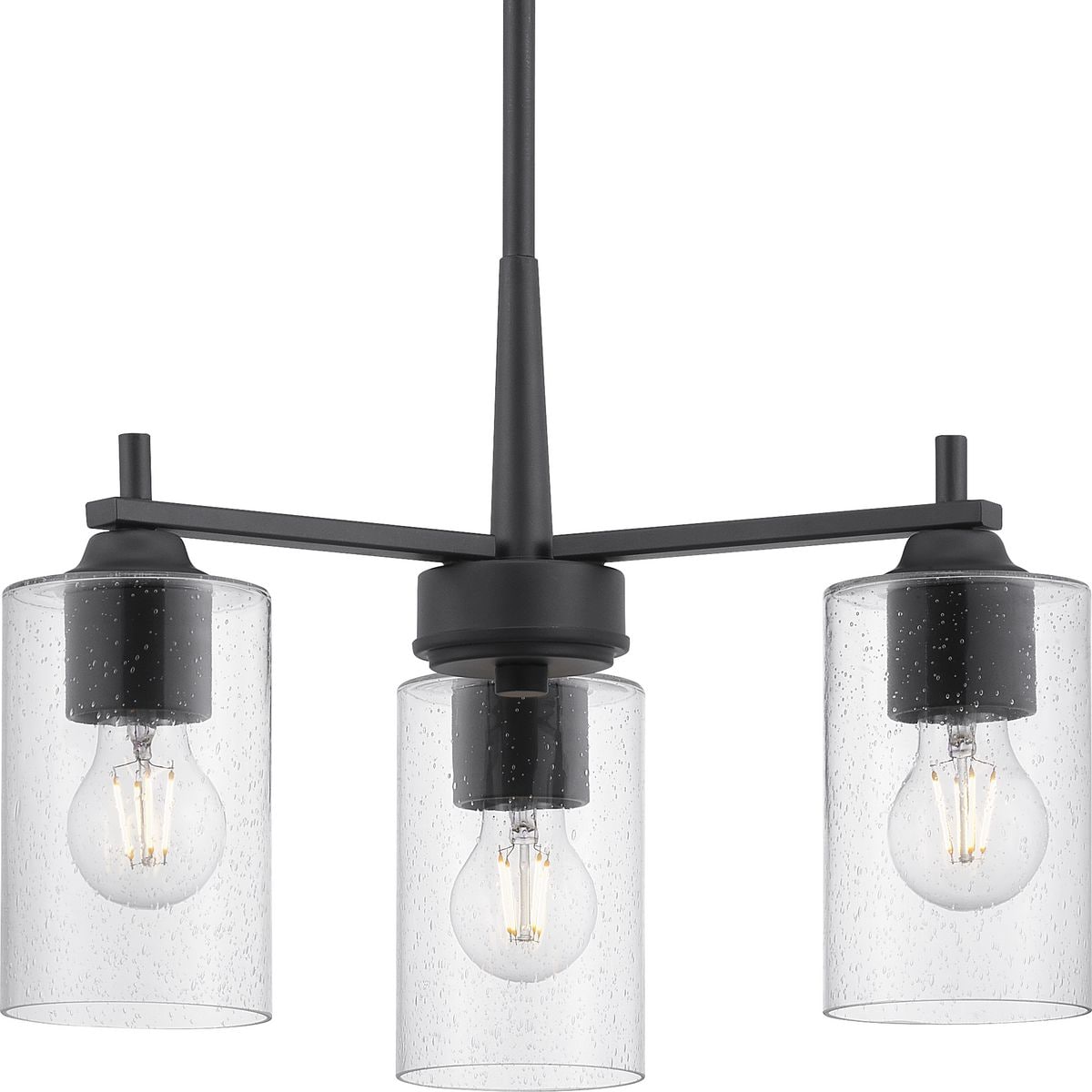 The Morehouse 3-Light Matte Black Chandelier from Progress Lighting seamlessly blends contemporary elegance with traditional charm. Its slim silhouette and elegant seeded glass shades offer a subtle sparkle, complementing any décor style in breakfast nooks, dining rooms, or bedrooms. Transition your space with this captivating chandelier that embodies both form and function.