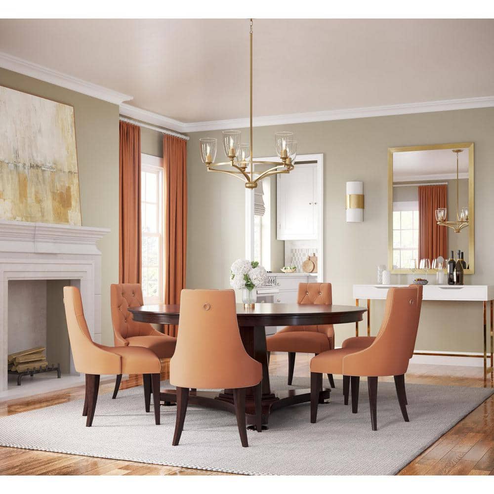 Add a touch of elegance to your dining room with the Parkhurst 5-Light Chandelier by Progress Lighting. Featuring a graceful design with a brushed bronze finish, this stunning fixture showcases clear glass shades, offering a contemporary take on traditional lighting. Ideal for creating an inviting ambiance, this chandelier suits modern farmhouse and transitional spaces beautifully.