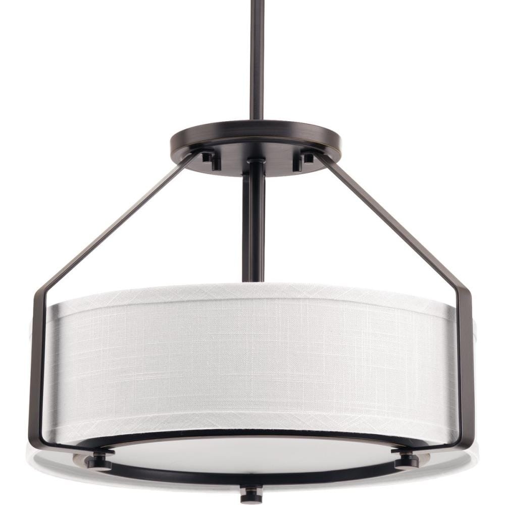 Transform your space with the versatile Ratios 3-Light Antique Bronze Drum Pendant from Progress Lighting. This fixture doubles as a pendant or semi-flush light, making it perfect for a range of settings from coastal to modern. Its antique bronze finish and summer linen shade offer both timeless elegance and modern functionality.