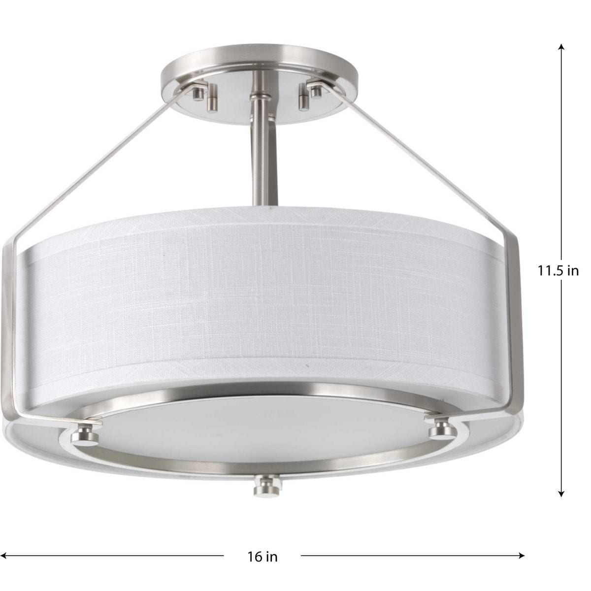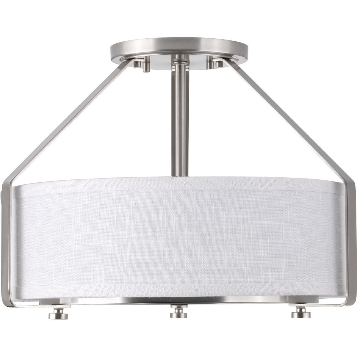 The Ratio 3-Light Pendant/Semi-Flush by Progress Lighting is a mesmerizing addition that elevates any interior space. Its brushed nickel finish and crisp linen drum shade seamlessly integrate into a modern transitional aesthetic. The sophisticated silhouette can be showcased in entryways or above dining areas, ensuring a warm and welcoming glow. Transform your environment into a beacon of luxury with this adaptable lighting marvel, setting the stage for both elegance and optimal illumination.