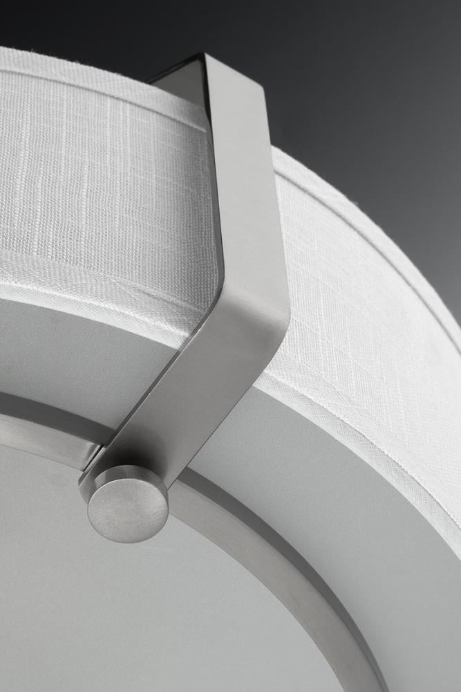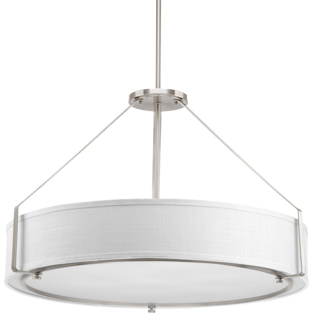 Sleek Design: Features a brushed nickel finish with a white linen drum shade and etched glass diffuser for a refined appearance.