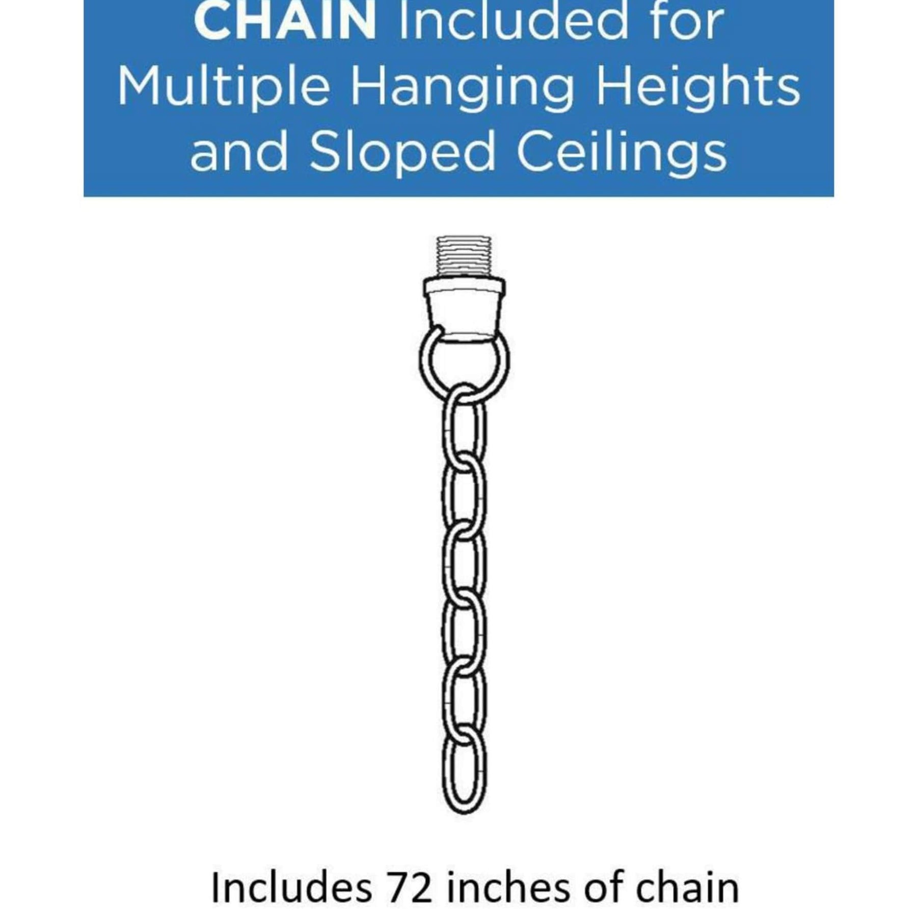 A: The maximum hanging height is 92.5 inches, with adjustable stems and chain to customize to your needed length.