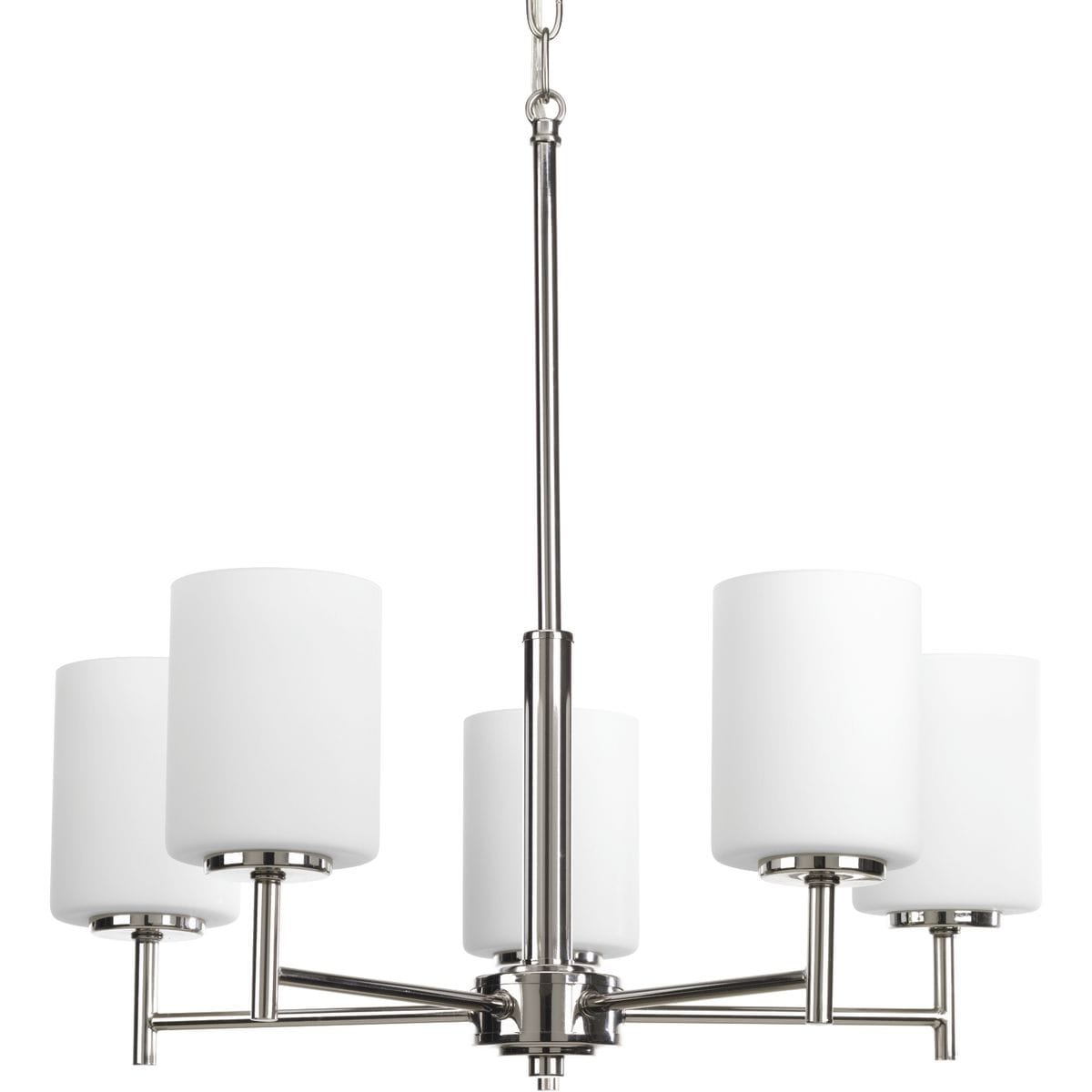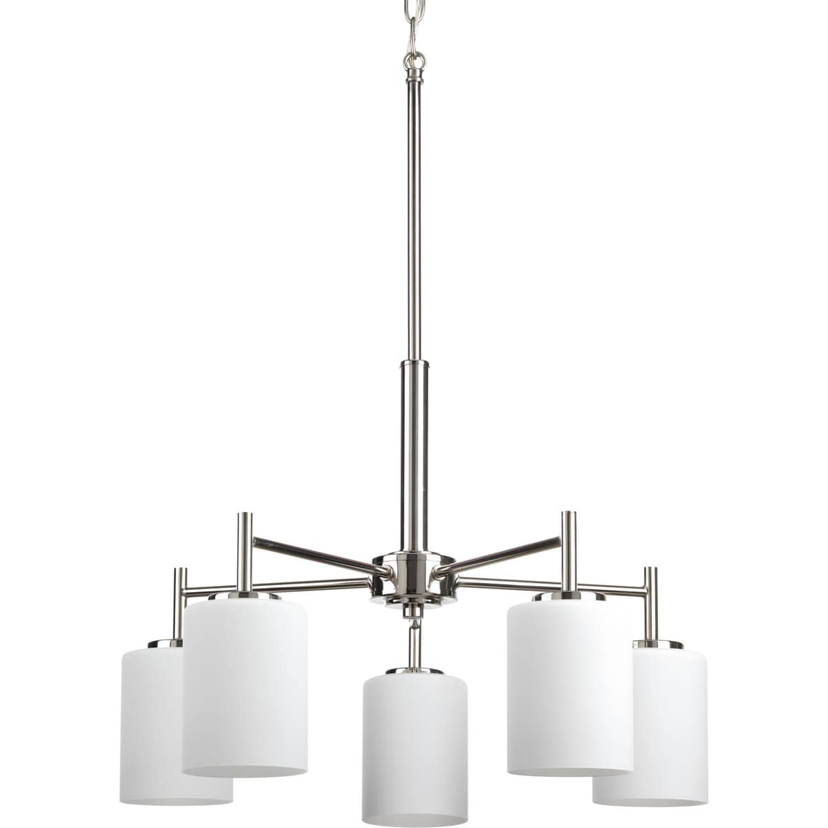 Illuminate your home with the stunning Replay 5-Light Chandelier by Progress Lighting. Ideal for modern and transitional spaces, this chandelier features a sleek polished nickel finish with elegant etched glass shades. Perfect for dining rooms, living rooms, or foyers, it brings sophistication and style to any room.