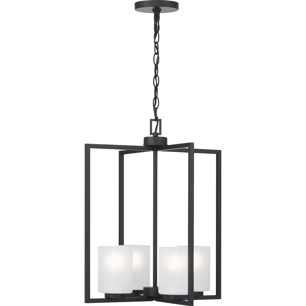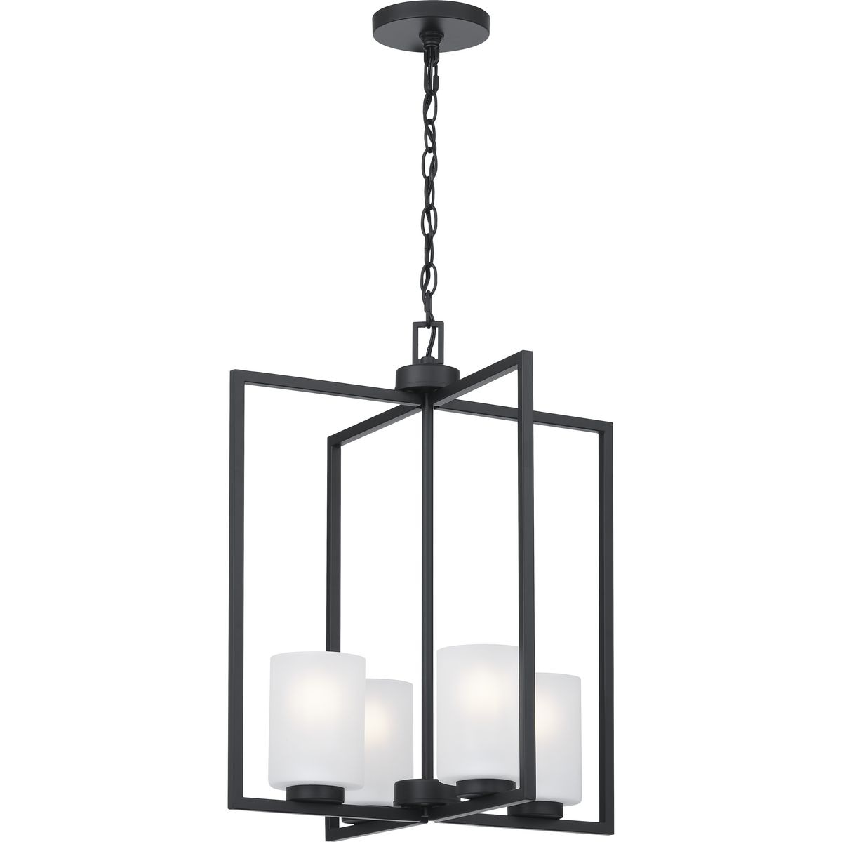Progress Lighting Rexington 4-Light Matte Black Modern/Contemporary Etched Glass Cylinder Medium Hanging Pendant Light