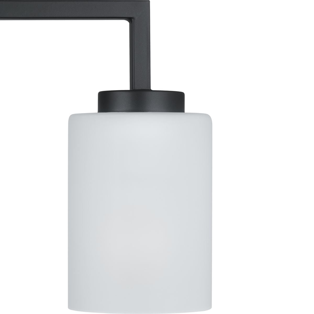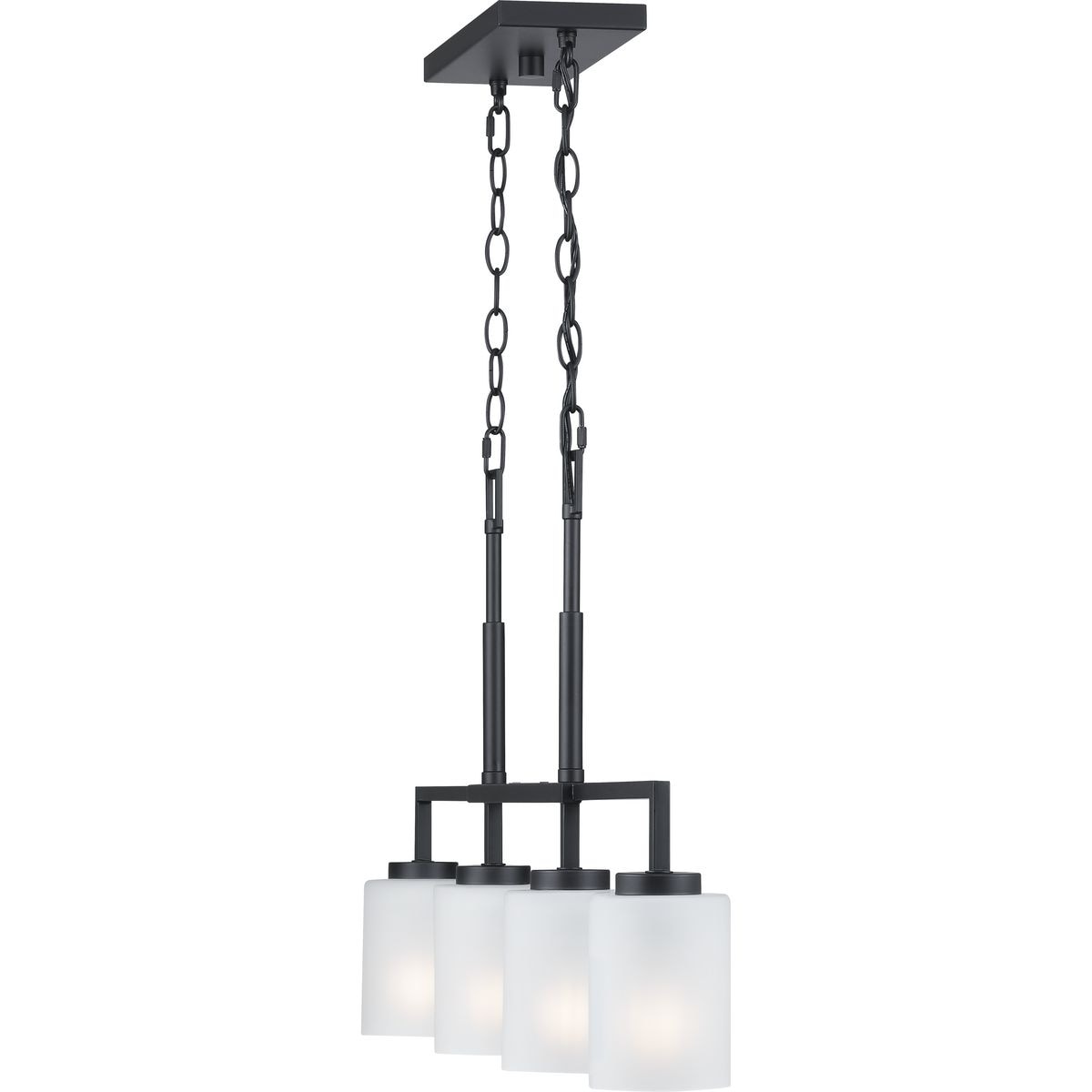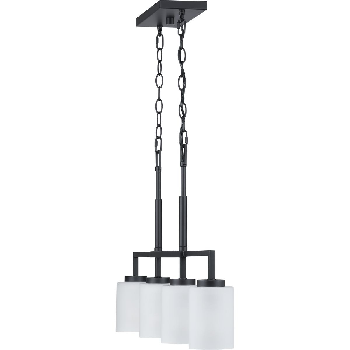 The Rexington 4-Light Matte Black Kitchen Island Light from Progress Lighting brings a sleek modern touch to any space with its elegant square profile and etched glass shades. Ideal for kitchens, dining areas, or any contemporary interior, it adds sophisticated illumination while allowing easy customization with adjustable heights.
