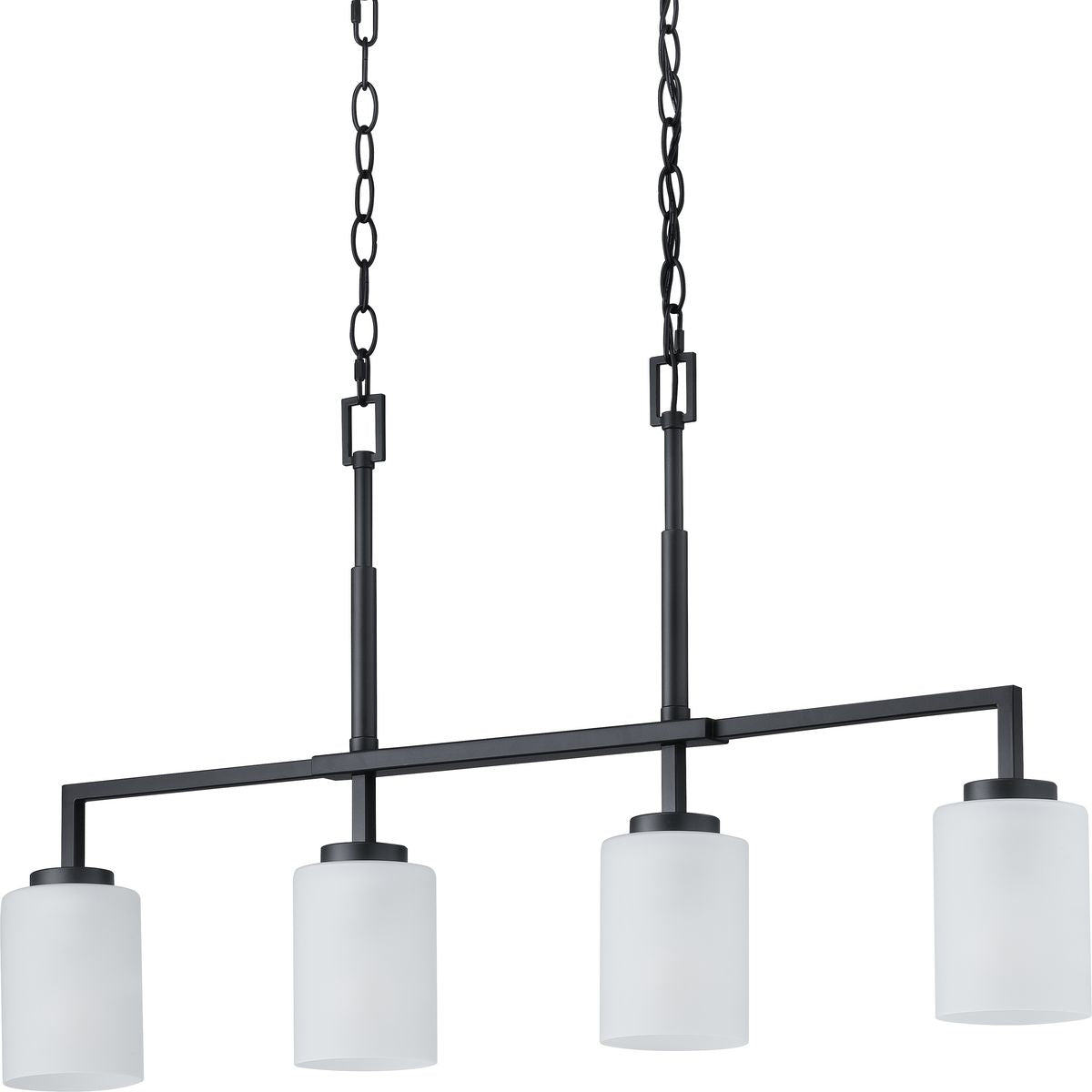 Progress Lighting Rexington 4-Light Matte Black Modern/Contemporary Etched Glass Linear Large Hanging Kitchen Island Light
